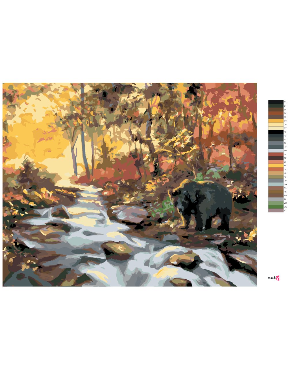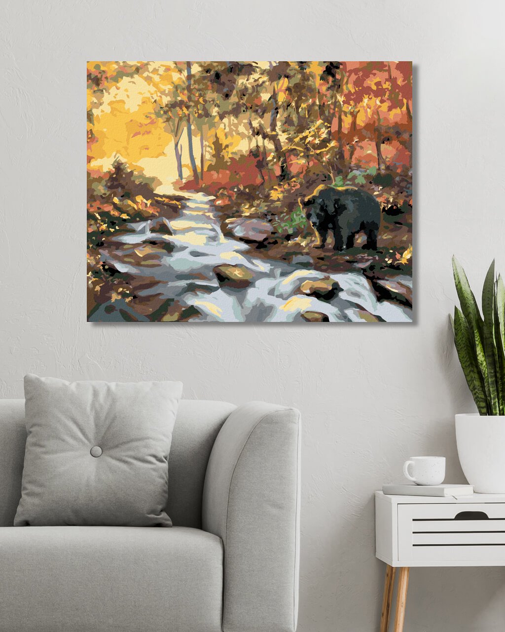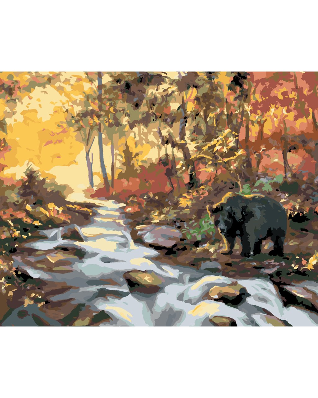 Maľovanie podľa čísel - MEDVEĎ PRI RIKE A ZÁPADE SLNKA (D. RUSTY RUST)