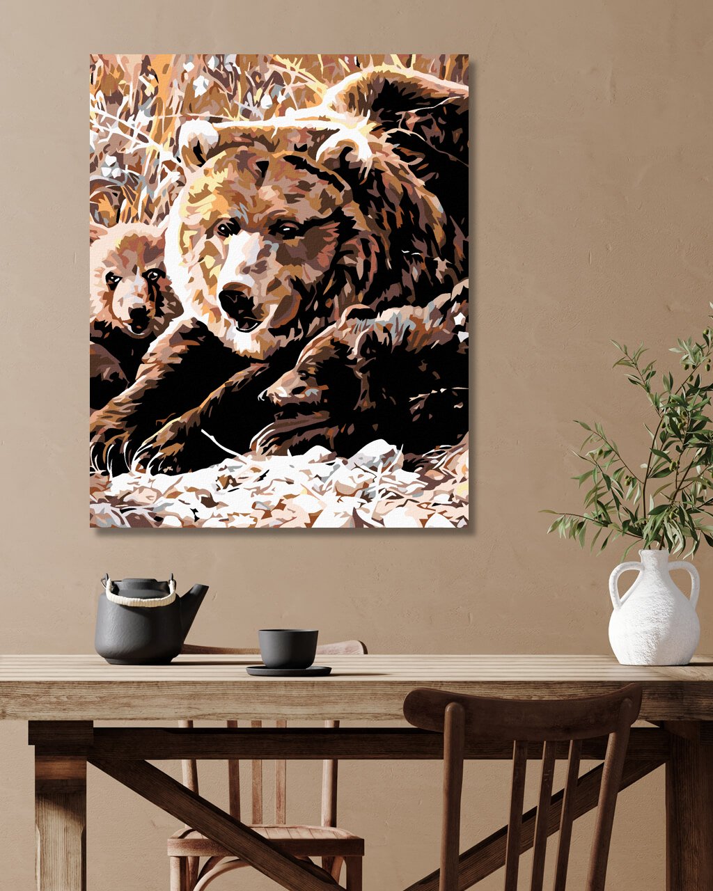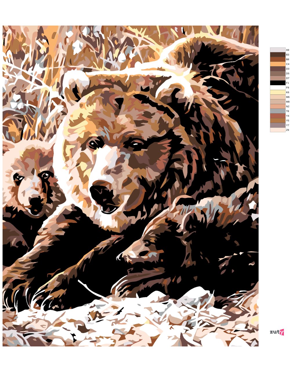 Maľovanie podľa čísel - MEDVEDICA S MLÁĎATAMI