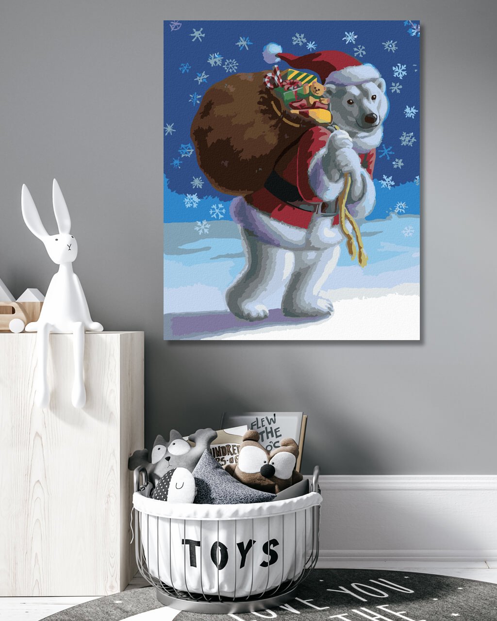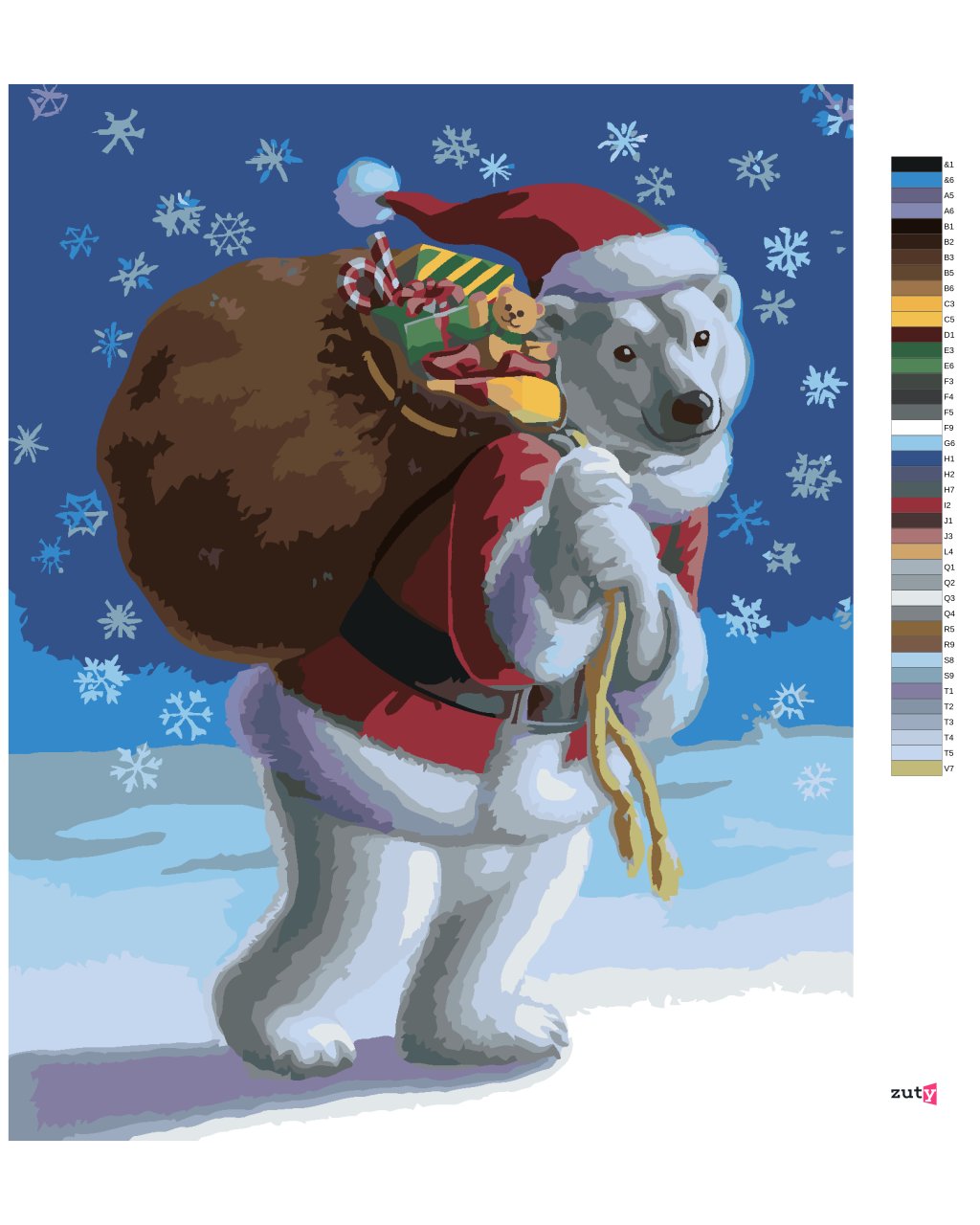 Maľovanie podľa čísel - MEDVEDÍK PREZLEČENÝ ZA SANTU (SUE ELLEN BROWN)