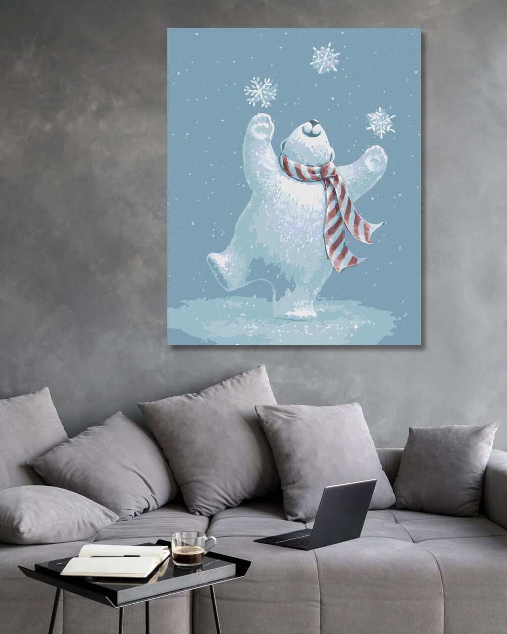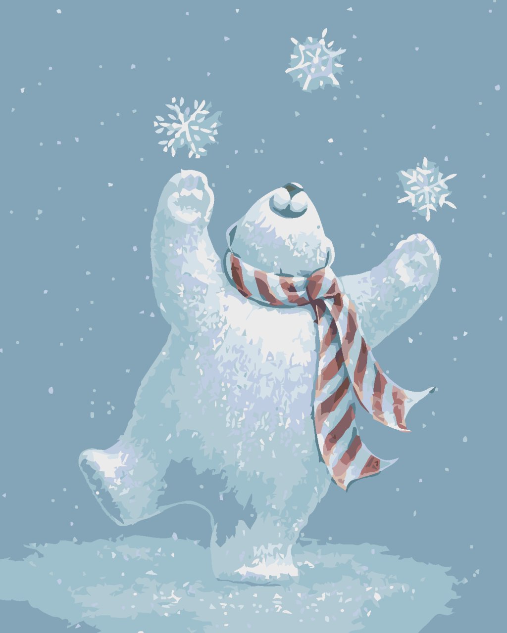 Maľovanie podľa čísel - MEDVEDÍK ŽONGLUJÚCI S VLOČKAMI (SUE ELLEN BROWN)