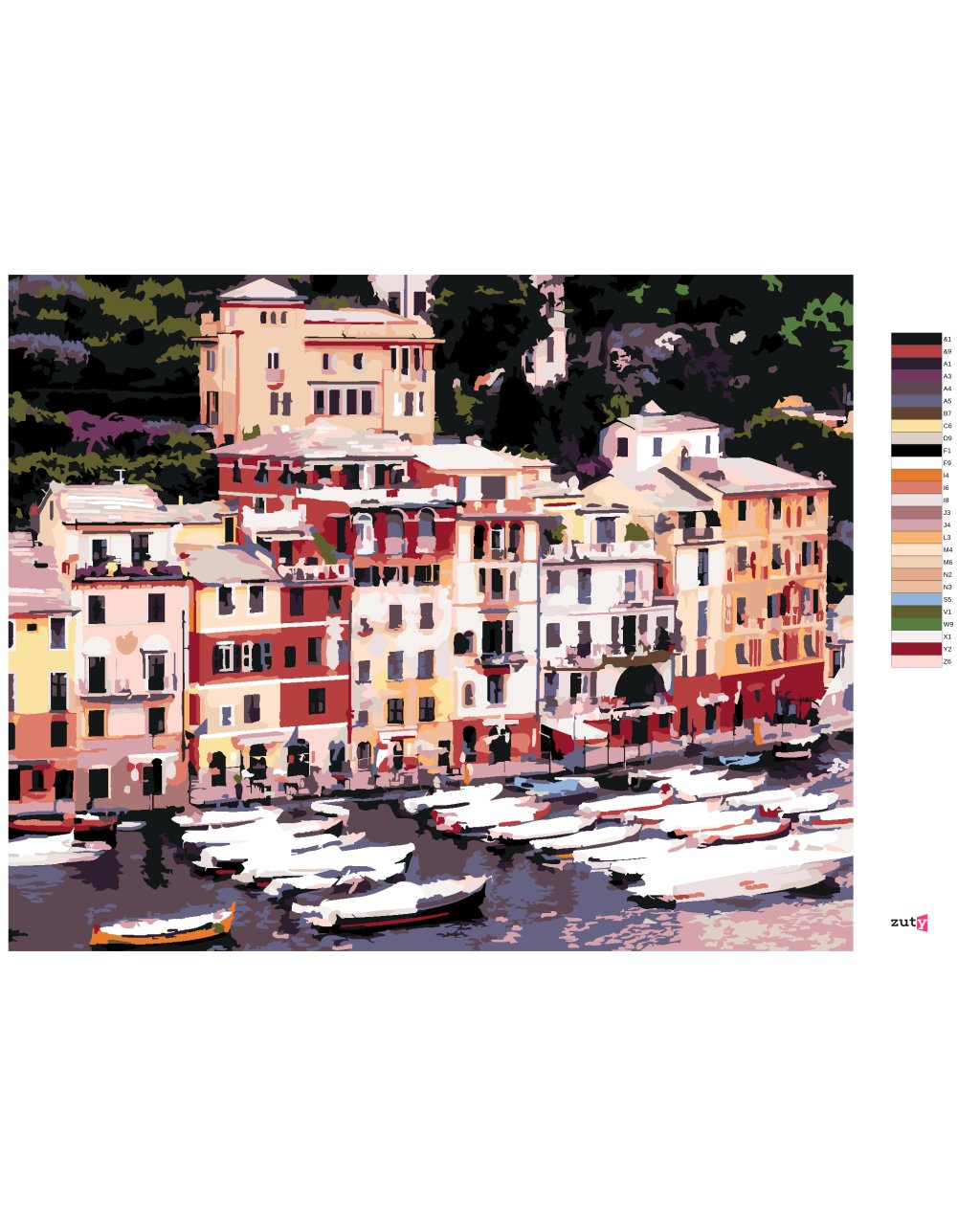 Maľovanie podľa čísel - MESTO A LODE, TALIANSKO (TED DAVIS)