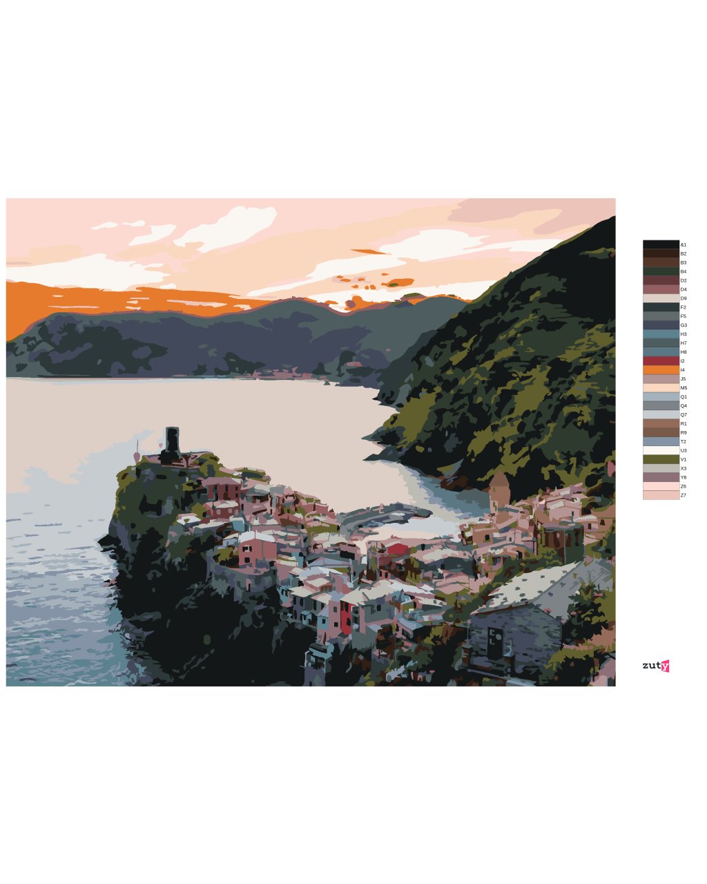 Maľovanie podľa čísel - MESTO PRI MORI, TALIANSKO (TED DAVIS)
