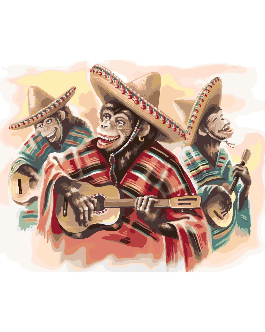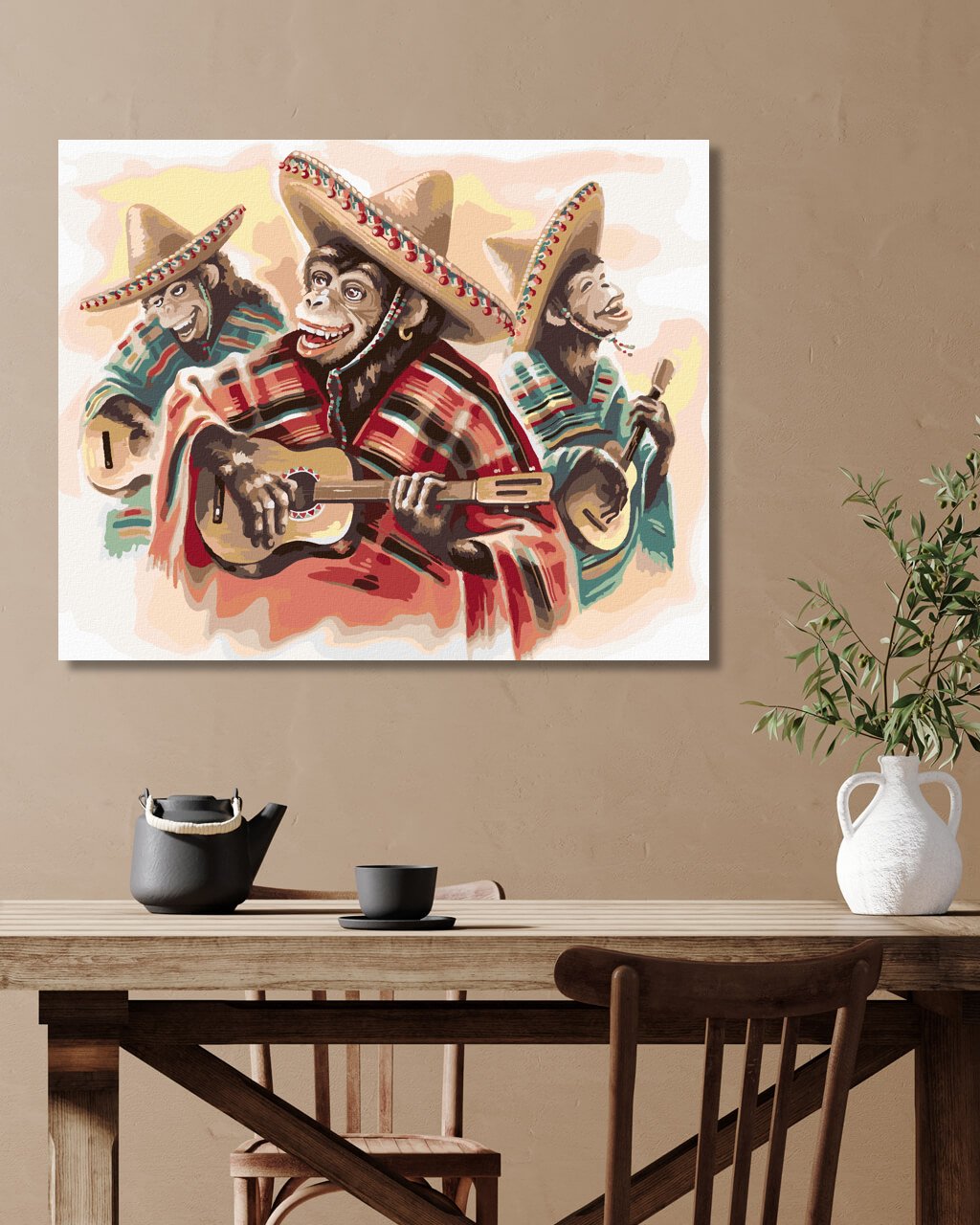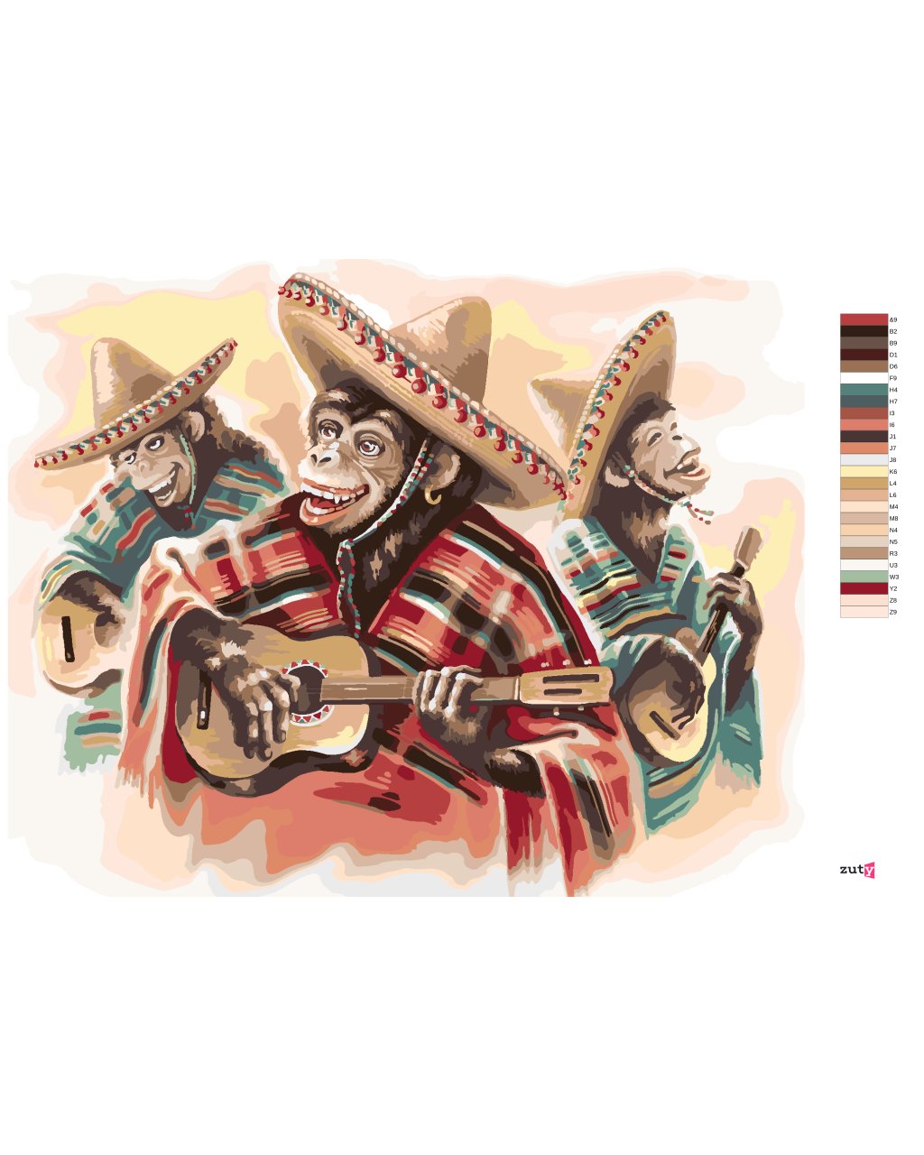 Maľovanie podľa čísel - MEXICKÉ TRIO OPÍC HRAJÚCE NA GITARU