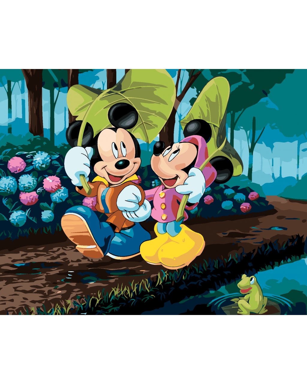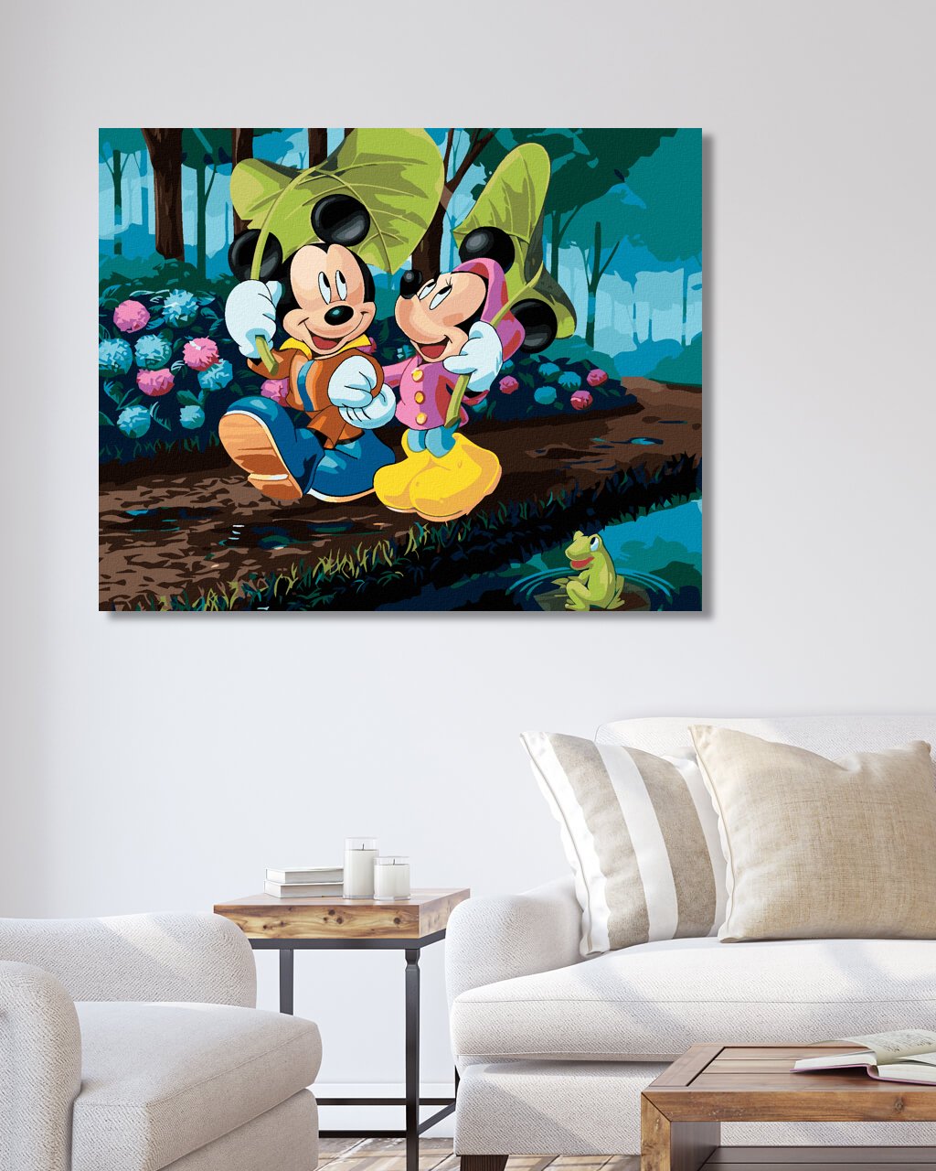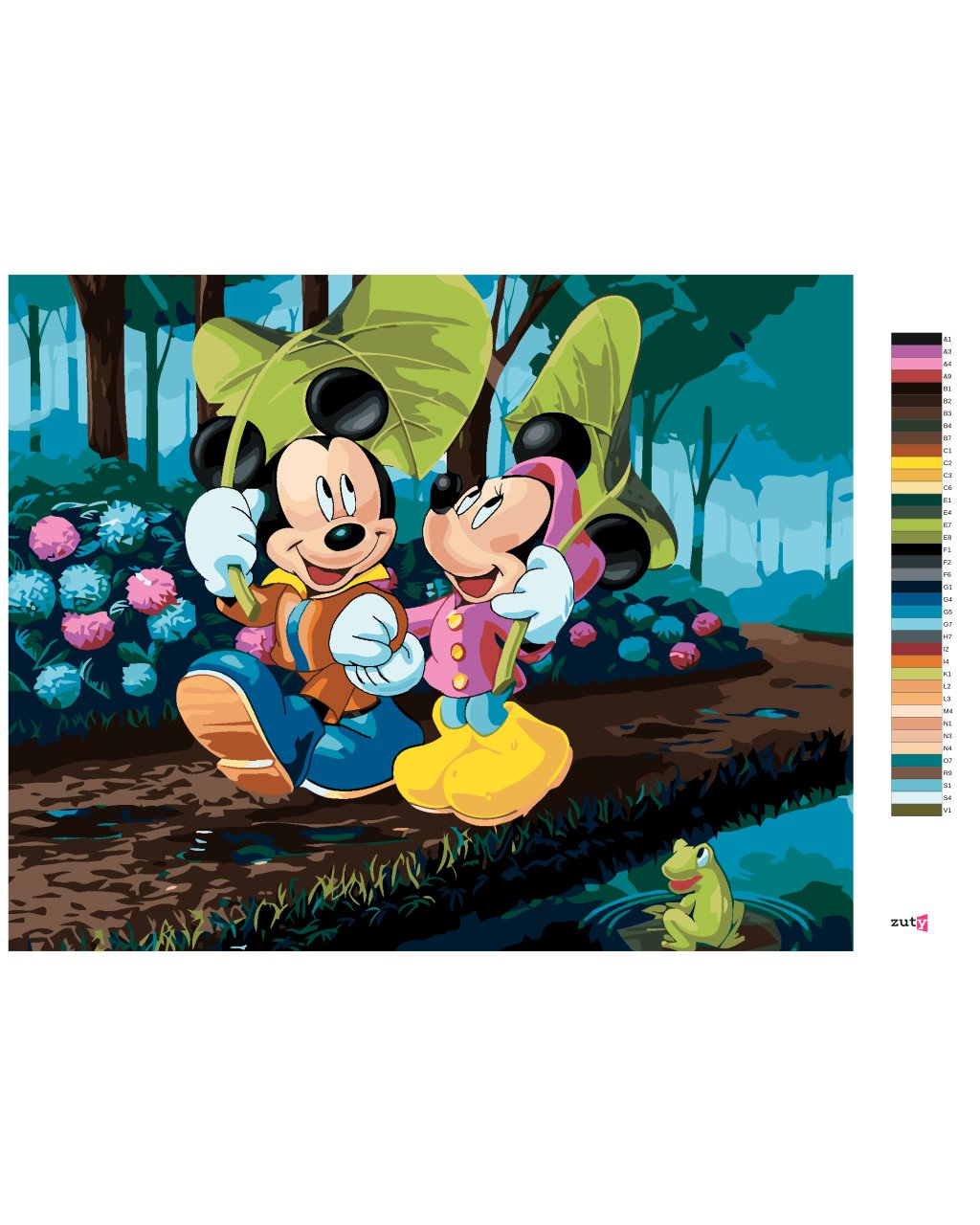 Maľovanie podľa čísel - MICKEY MOUSE A MINNIE S DÁŽDNIKMI Z LISTOV