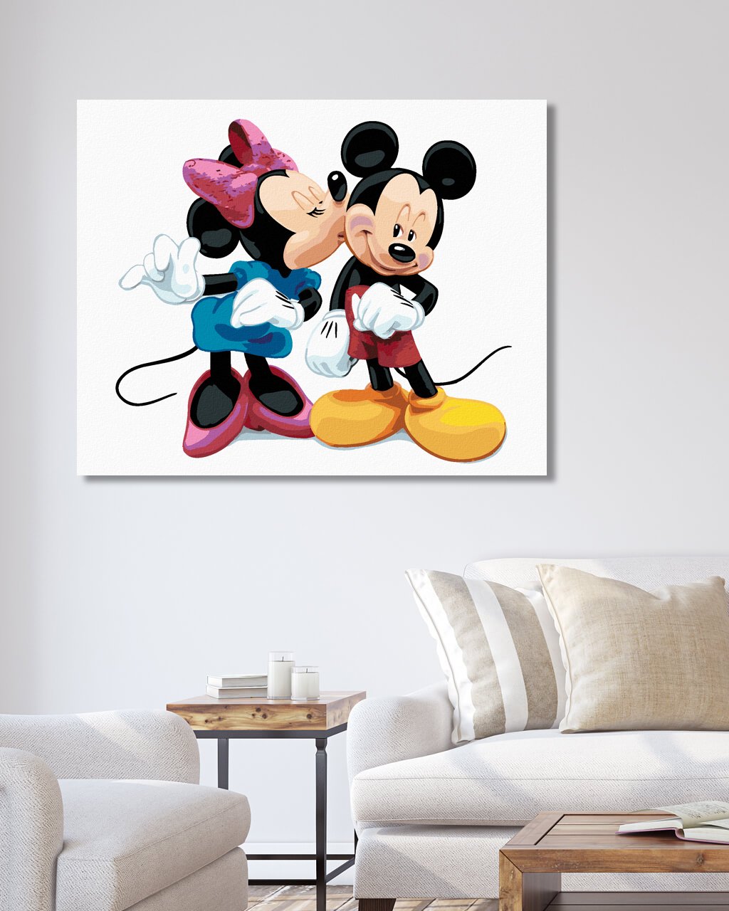 Maľovanie podľa čísel - MICKEY MOUSE DOSTAL OD MINNIE PUSU NA TVÁR
