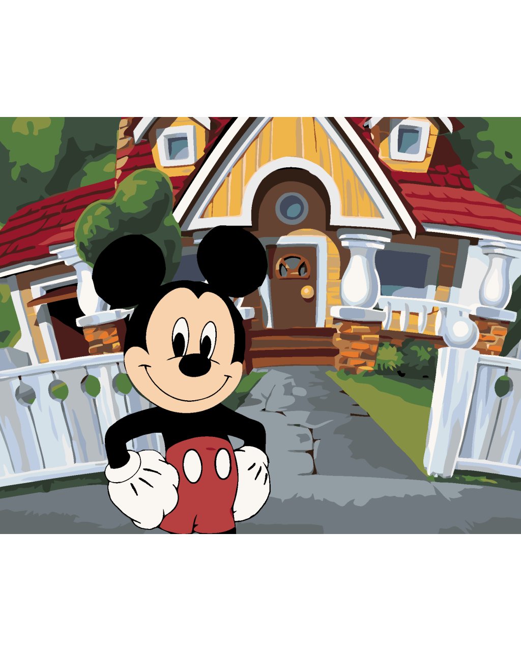 Maľovanie podľa čísel - MICKEY MOUSE PRED DOMČEKOM