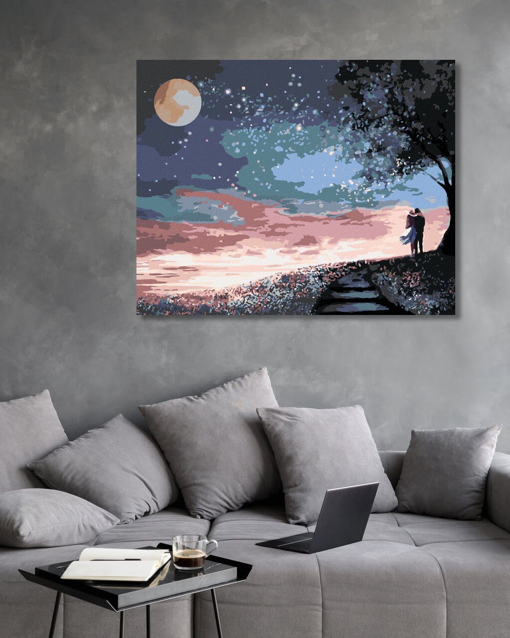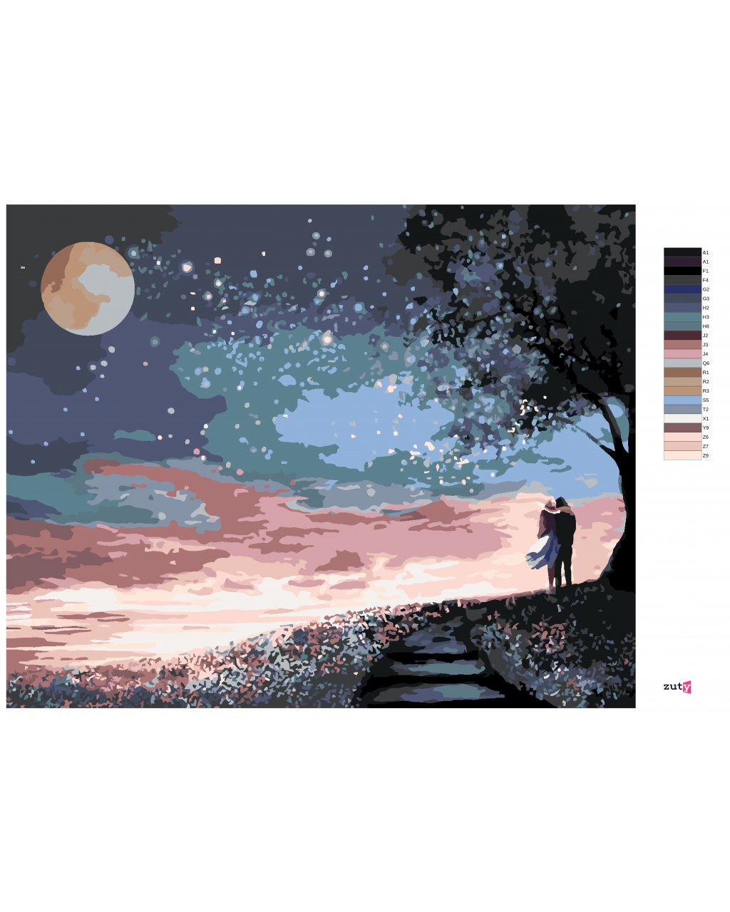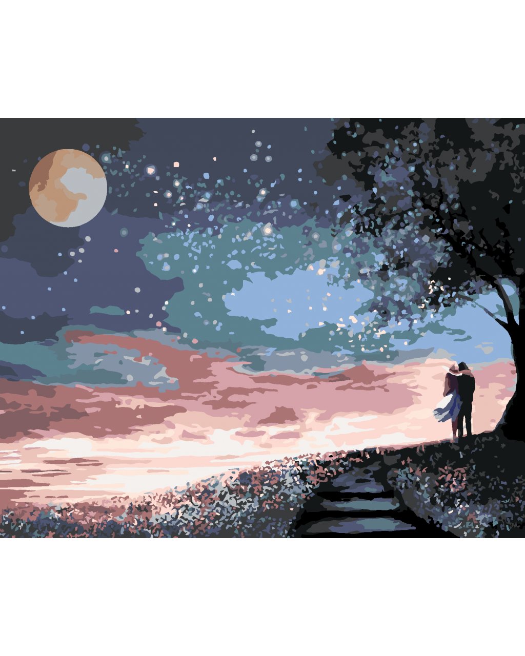 Maľovanie podľa čísel - MILENCI POD HVIEZDAMI MESIACA