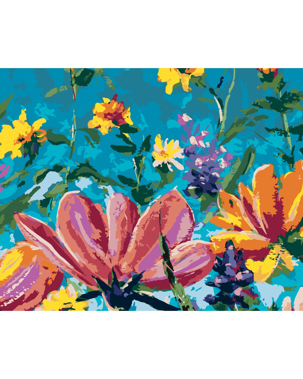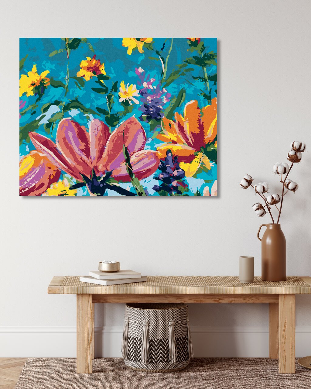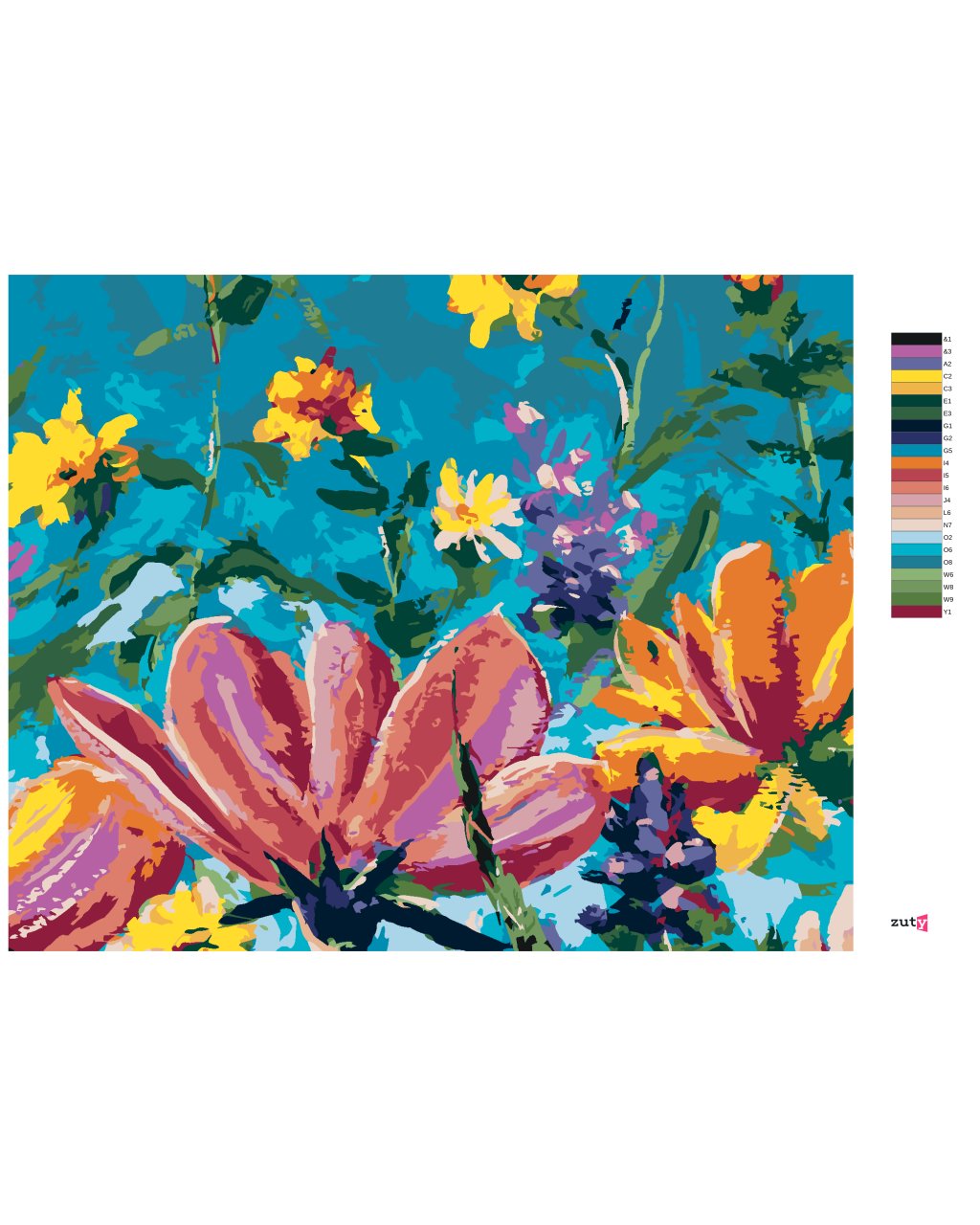 Maľovanie podľa čísel - MIX KVETÍN NA MODROM POZADIÍ