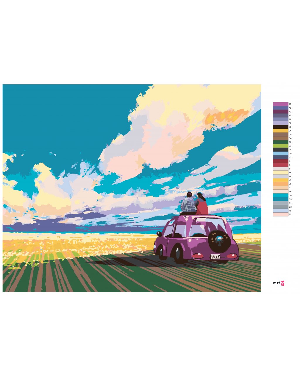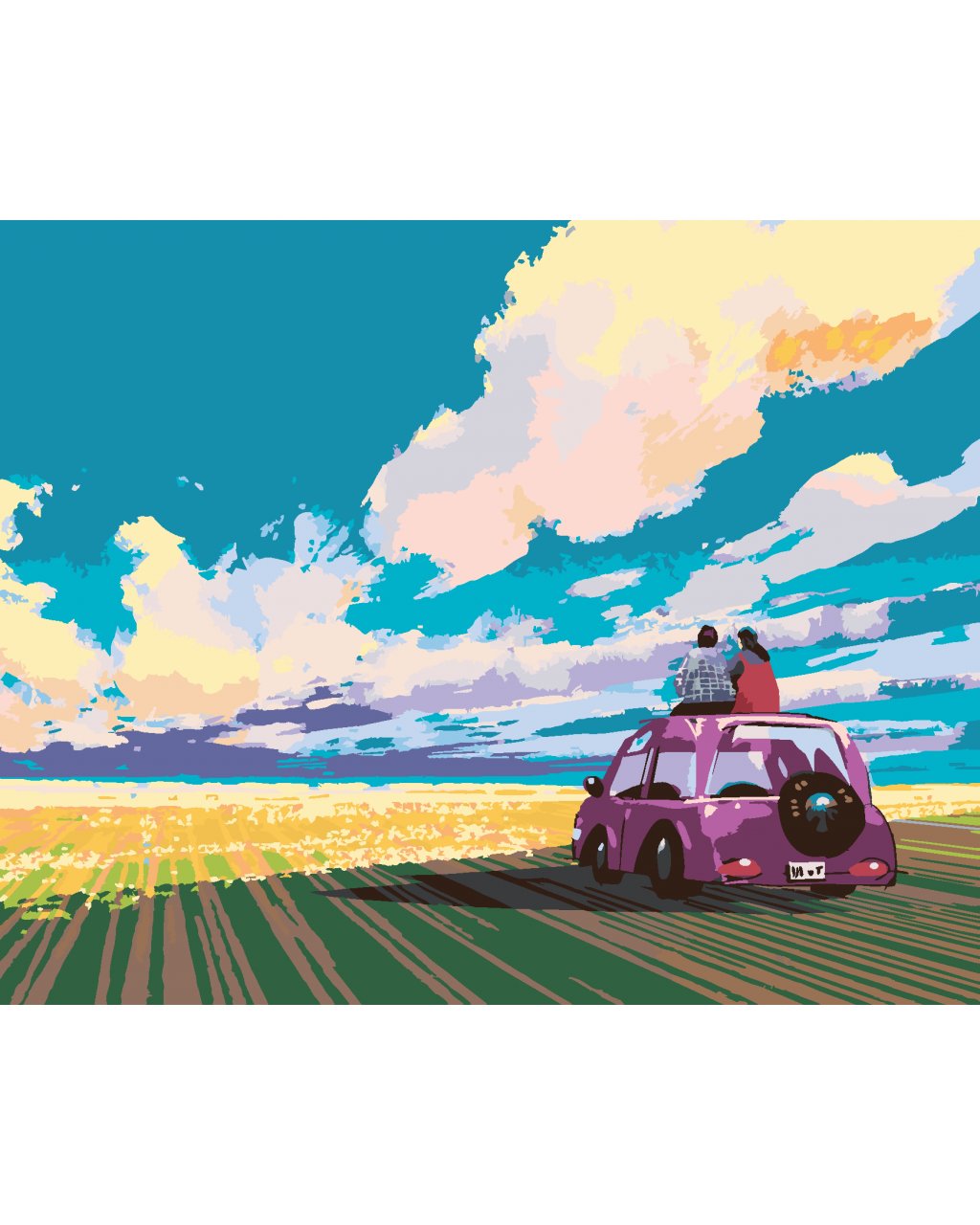 Maľovanie podľa čísel - MLADÝ PÁR SEDIACI NA AUTE NA POLI