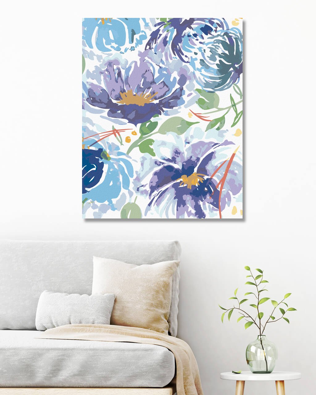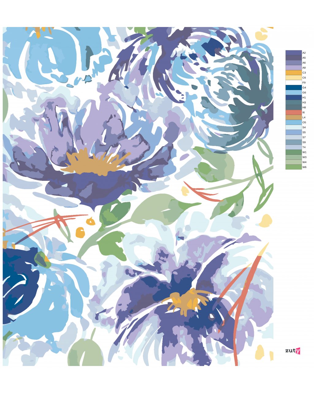 Maľovanie podľa čísel - MODRÉ KVETY A LISTY (ALEXANDRIA GILBERT)