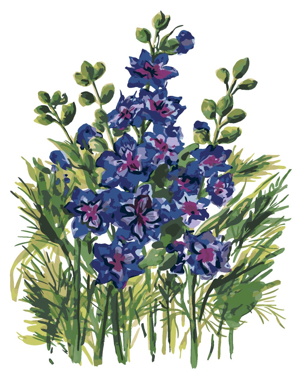 Maľovanie podľa čísel - MODRÉ KVETY STRAČKY (ALEXANDRIA GILBERT)