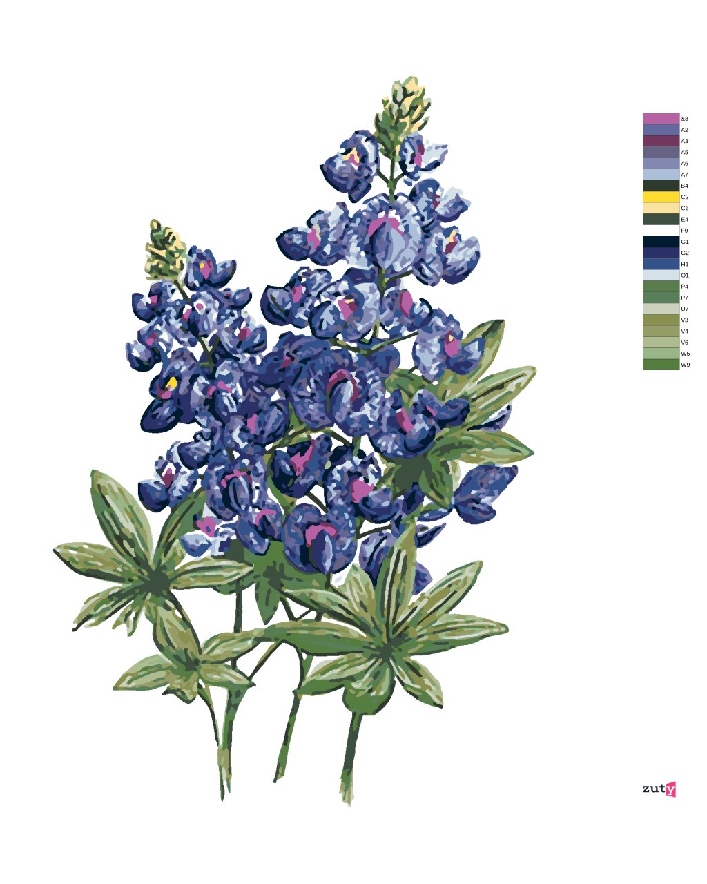 Maľovanie podľa čísel - MODRÉ KVETY VLČIEHO BÔBU (ALEXANDRIA GILBERT)