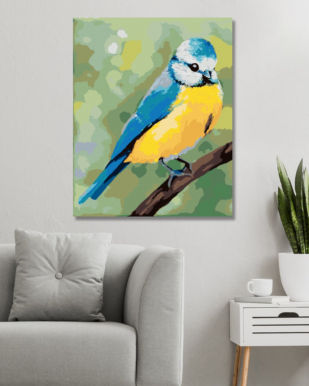 Maľovanie podľa čísel - MODRÝ VTÁČIK SEDIACI NA KONÁRIKU (MYROSLAVA VOLOSCHUK)