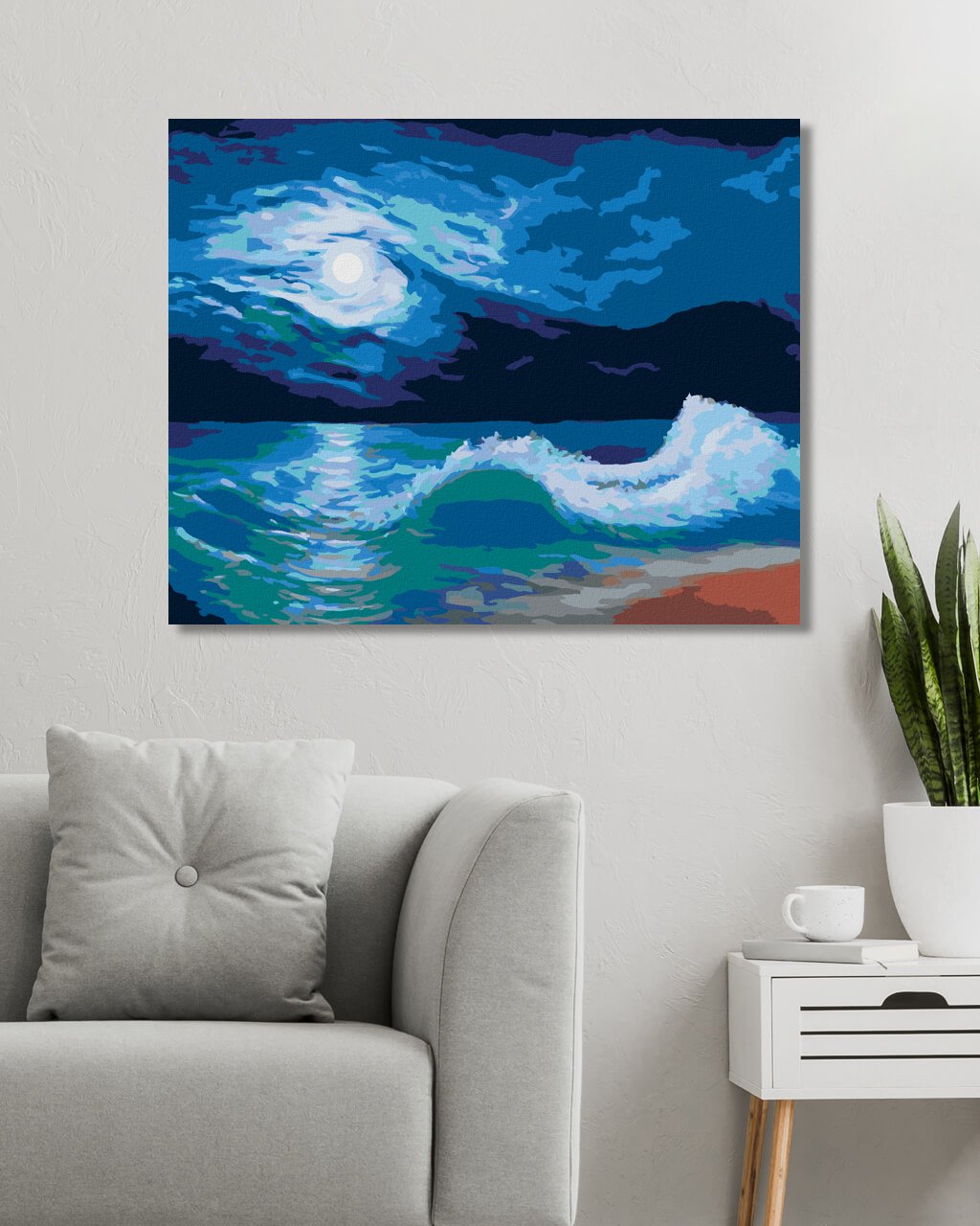 Maľovanie podľa čísel - MORSKÁ KRAJINA S MESAČNÝM SVITOM