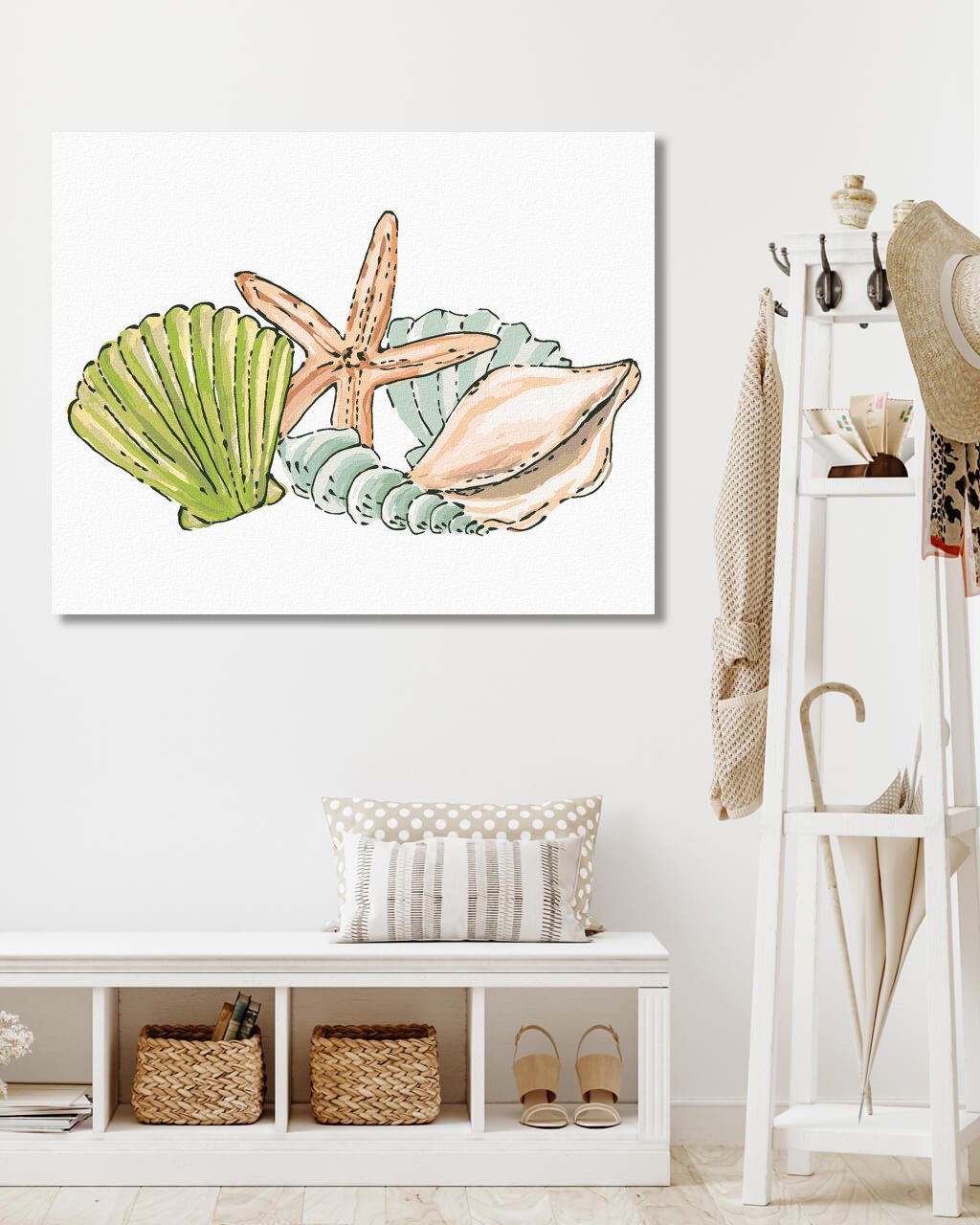 Maľovanie podľa čísel - MORSKÉ MUŠLE A HVIEZDICE (HALEY BUSH)