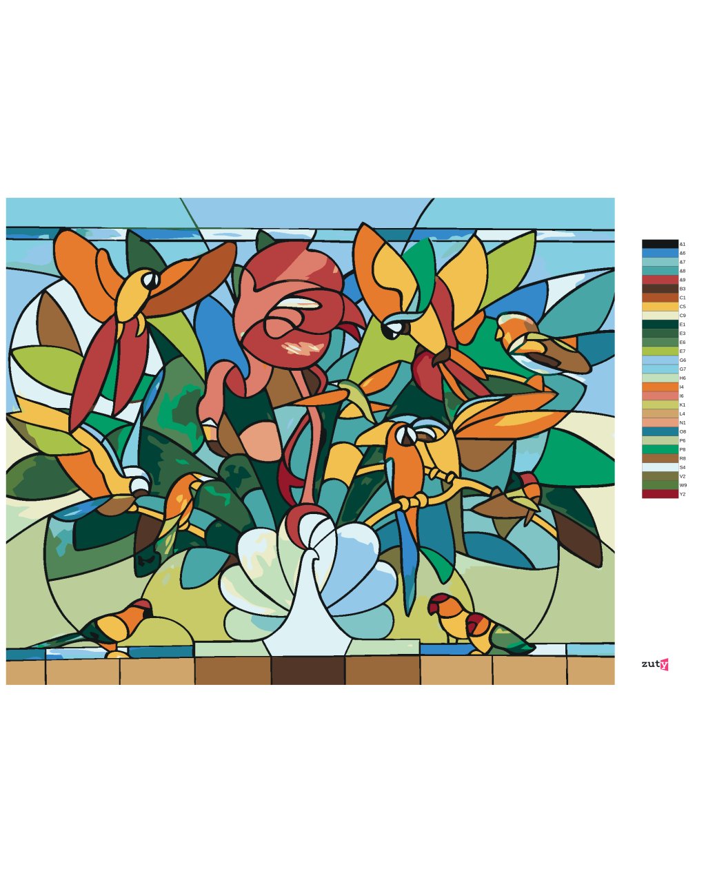 Maľovanie podľa čísel - MOZAIKA VTÁKY (D. RUSTY RUST)