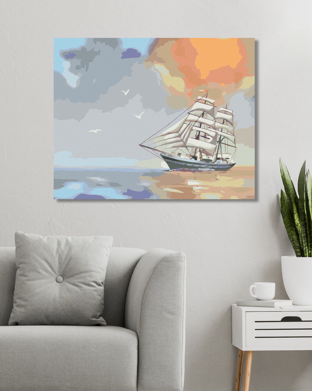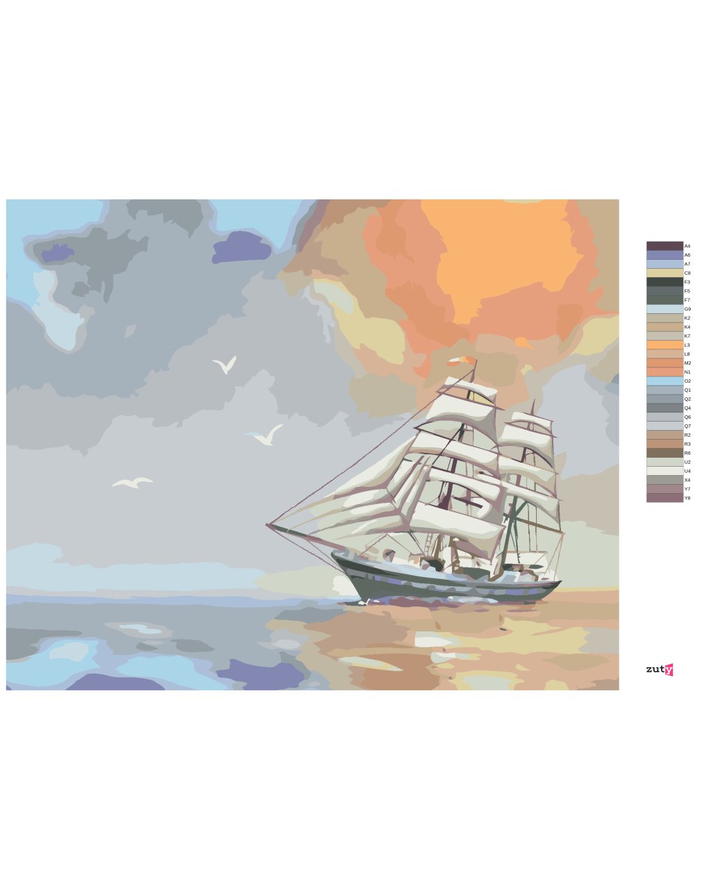 Maľovanie podľa čísel - MRAKY, PLACHETNICA A ČAJKY (D. RUSTY RUST)