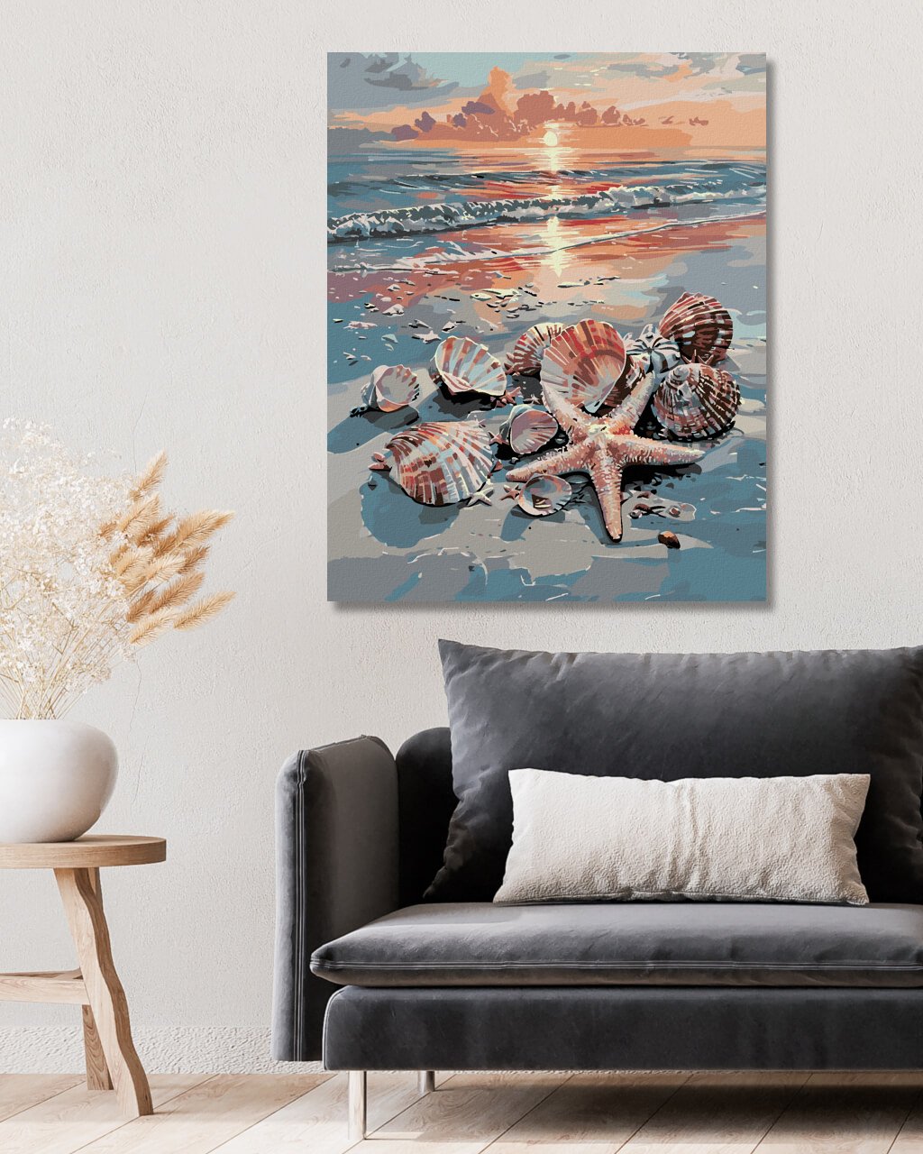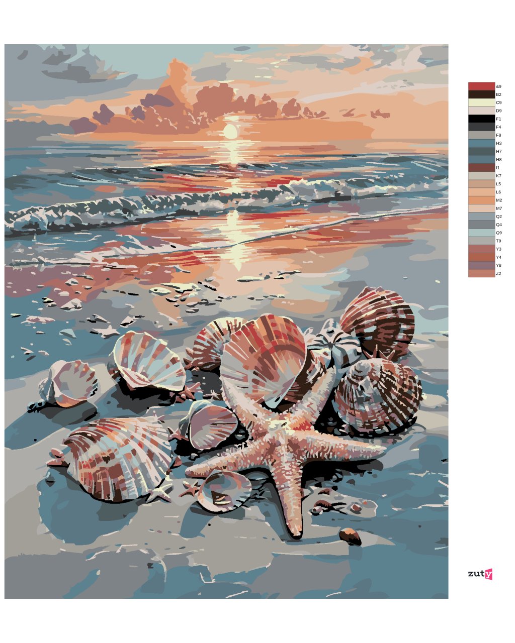 Maľovanie podľa čísel - MUŠLE NA PLÁŽI A ZÁPAD SLNKA