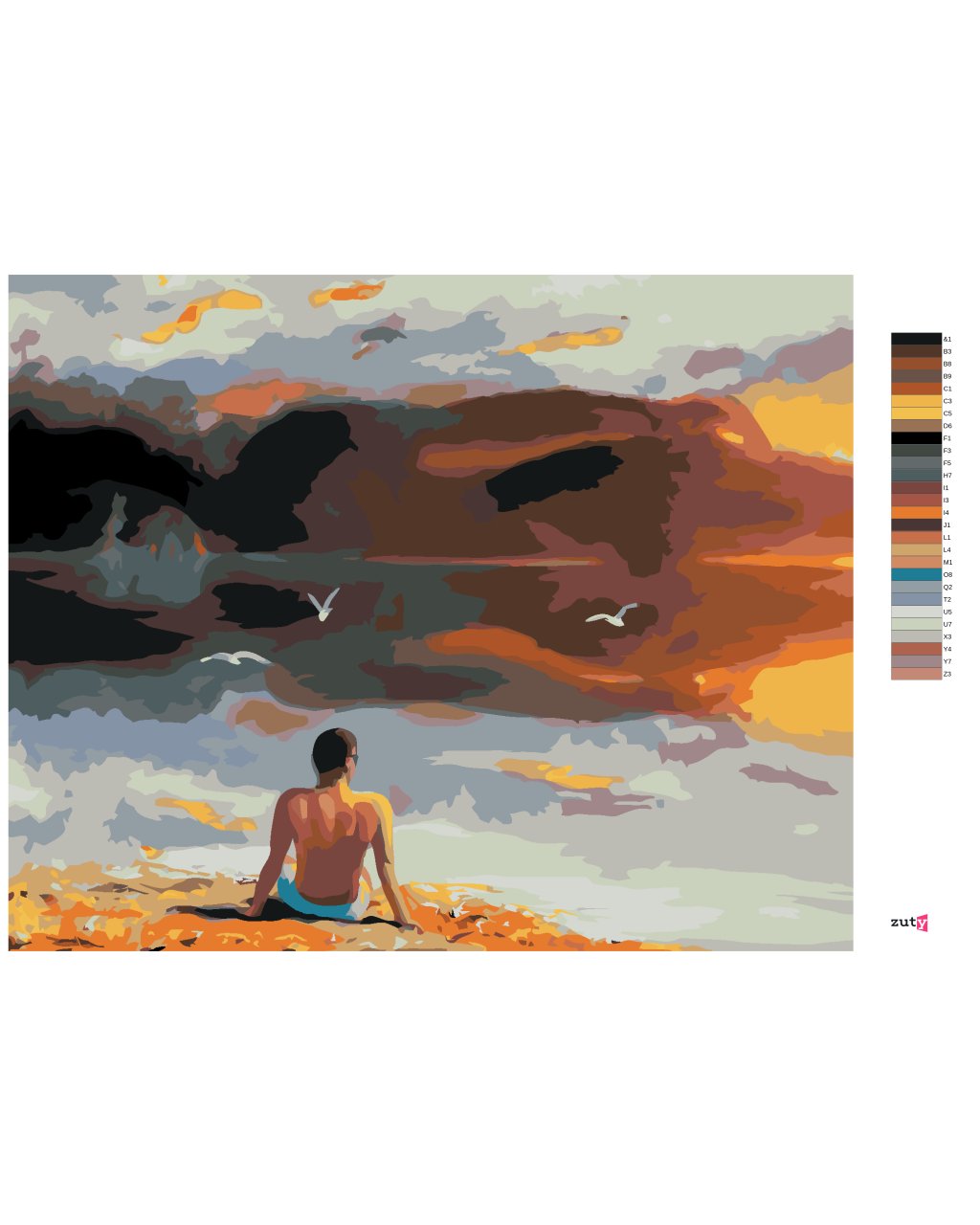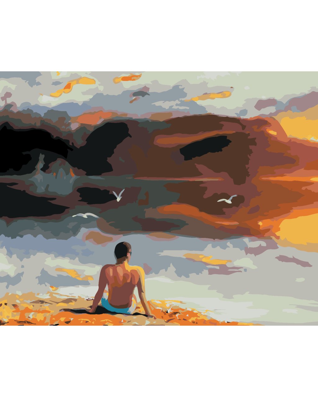 Maľovanie podľa čísel - MUŽ A ZÁPAD SLNKA PRI VODE (D. RUSTY RUST)