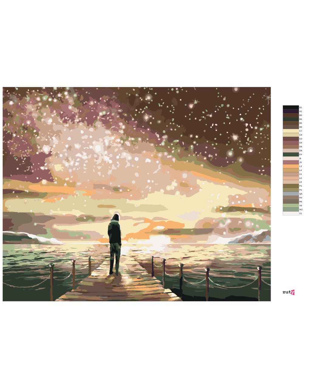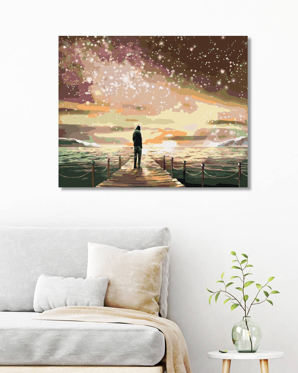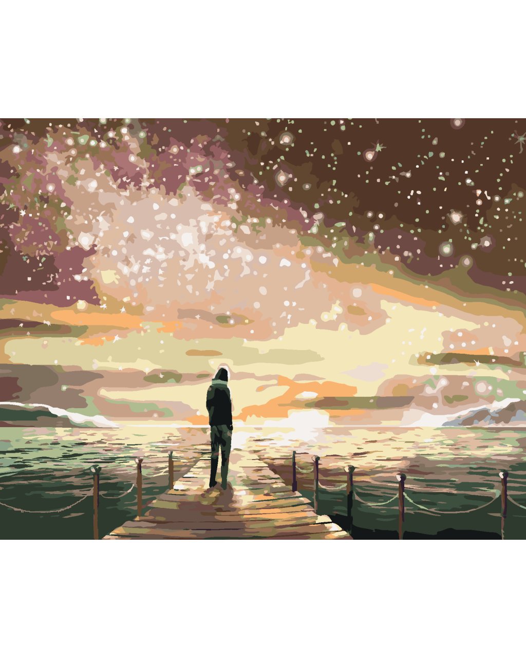 Maľovanie podľa čísel - MUŽ NA MÓLE POD ŽIARIACOU OBLOHOU