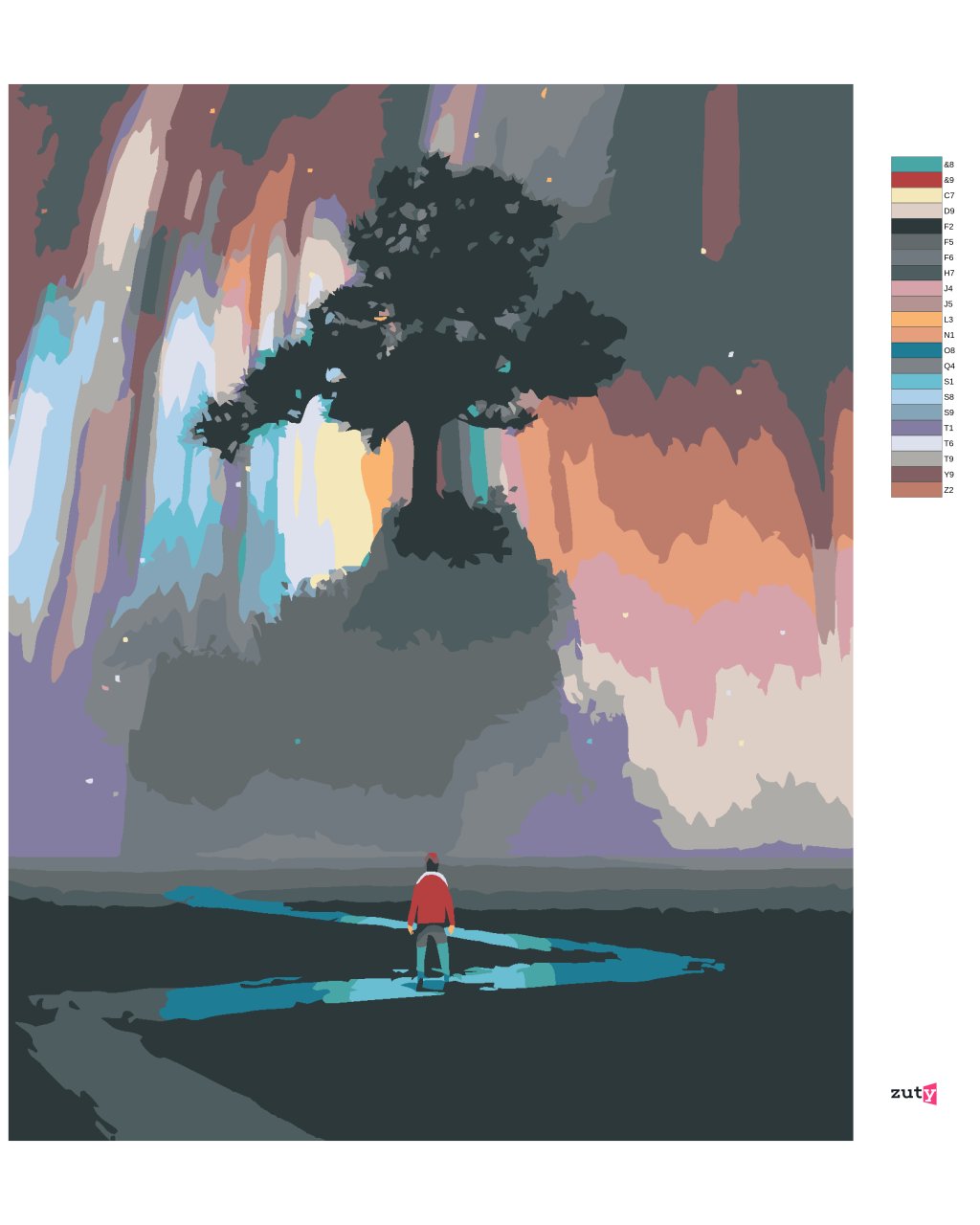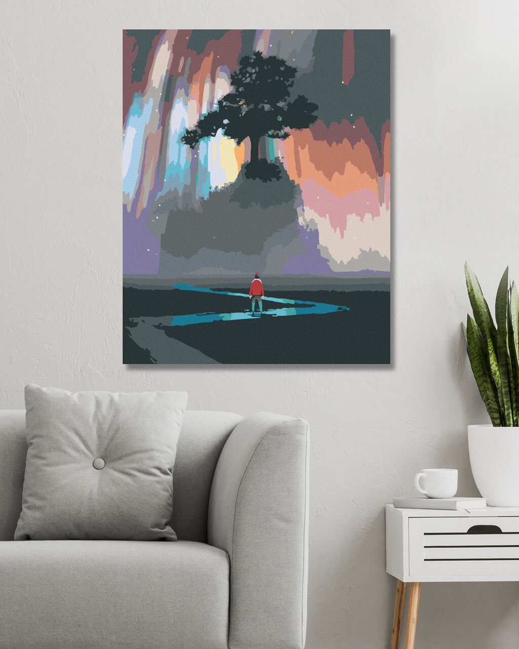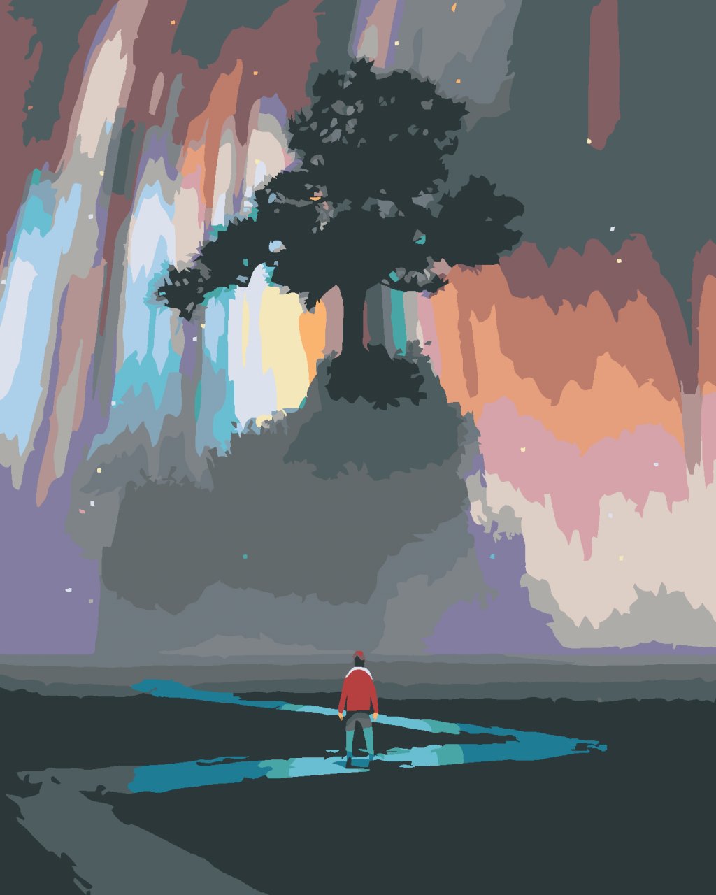 Maľovanie podľa čísel - MUŽ PRICHÁDZAJÚCI K VESMÍRNEMU STROMU