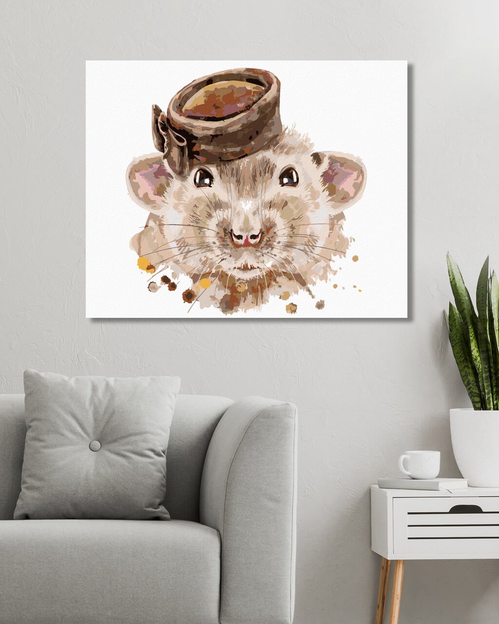 Maľovanie podľa čísel - MYŠKA S HNEDÝM KLOBÚKOM