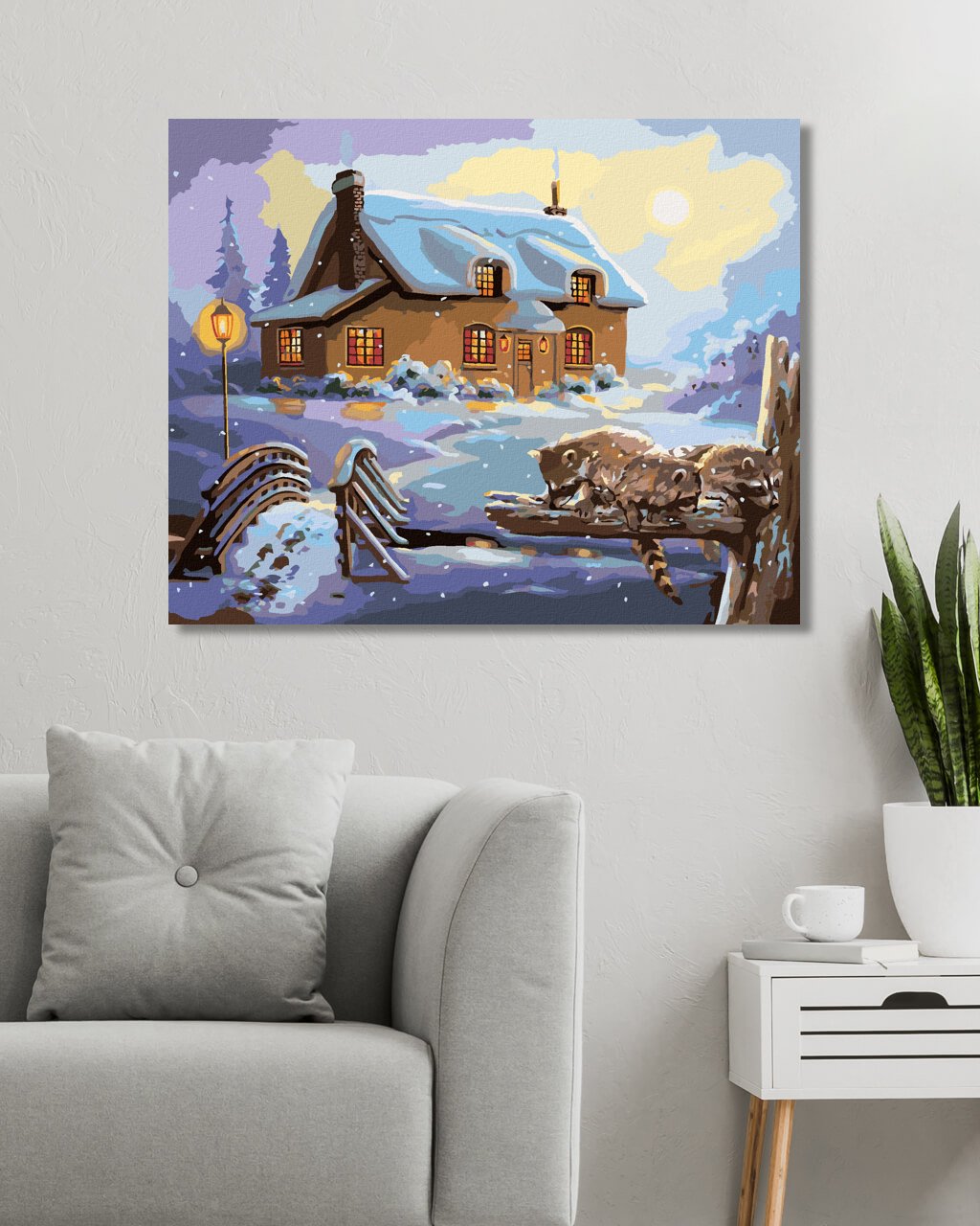 Maľovanie podľa čísel - MÝVAL A DOM V ZIME (D. RUSTY RUST)