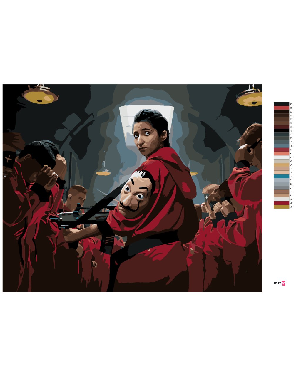 Maľovanie podľa čísel - NAIROBI A INÉ V ČERVENEJ FARBE (La casa de papel)