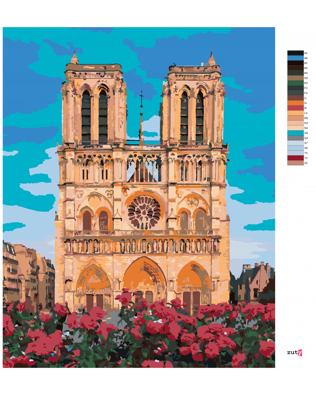 Maľovanie podľa čísel - NOTRE DAME V PARÍŽI A ČERVENÉ KVETY