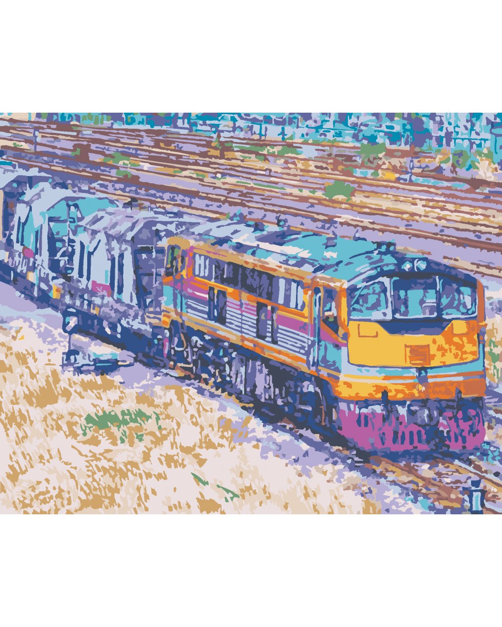 Maľovanie podľa čísel - OBOJSMERNÝ VLAK PRICHÁDZAJÚCI DO STANICE