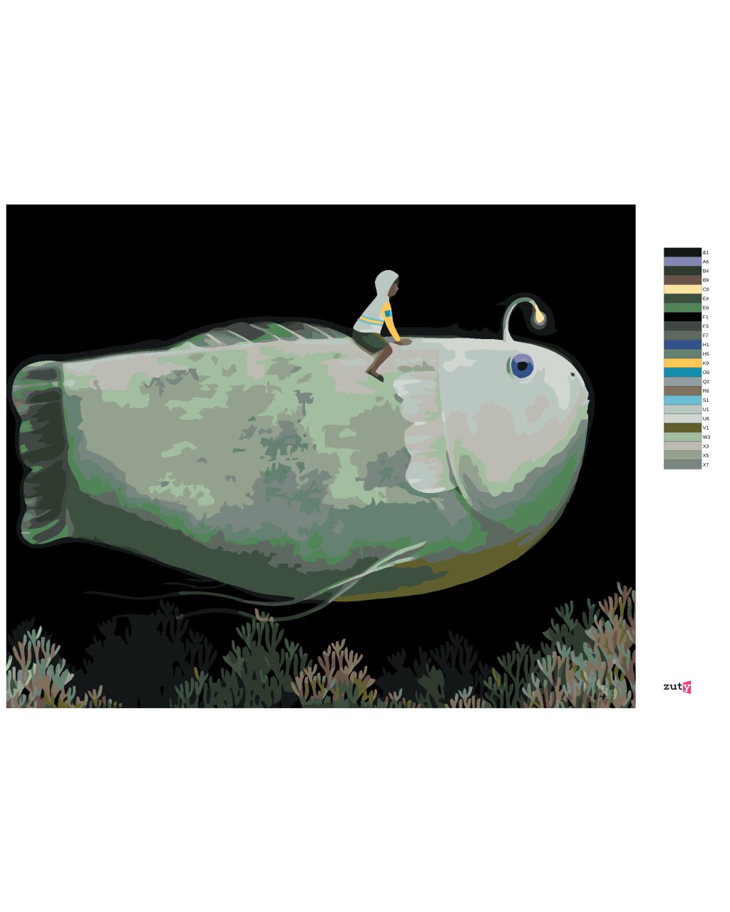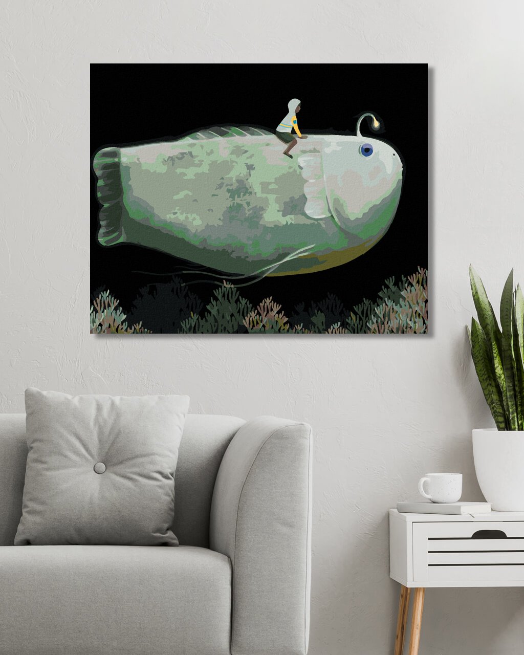 Maľovanie podľa čísel - OBROVSKÁ RYBA S LAMPIČKOU