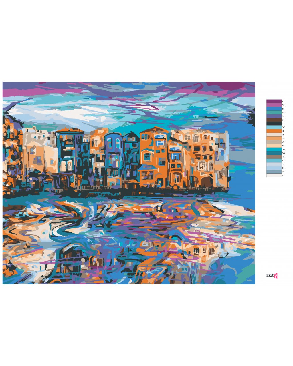 Maľovanie podľa čísel - ODRAZ MESTA VO VODE