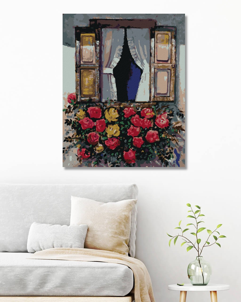 Maľovanie podľa čísel - OKNO S ROZKVITNUTÝMI KVETMI