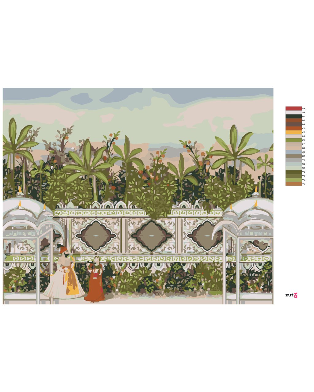 Maľovanie podľa čísel - OKRASNÝ MÚR V ZÁHRADE MUGHAL