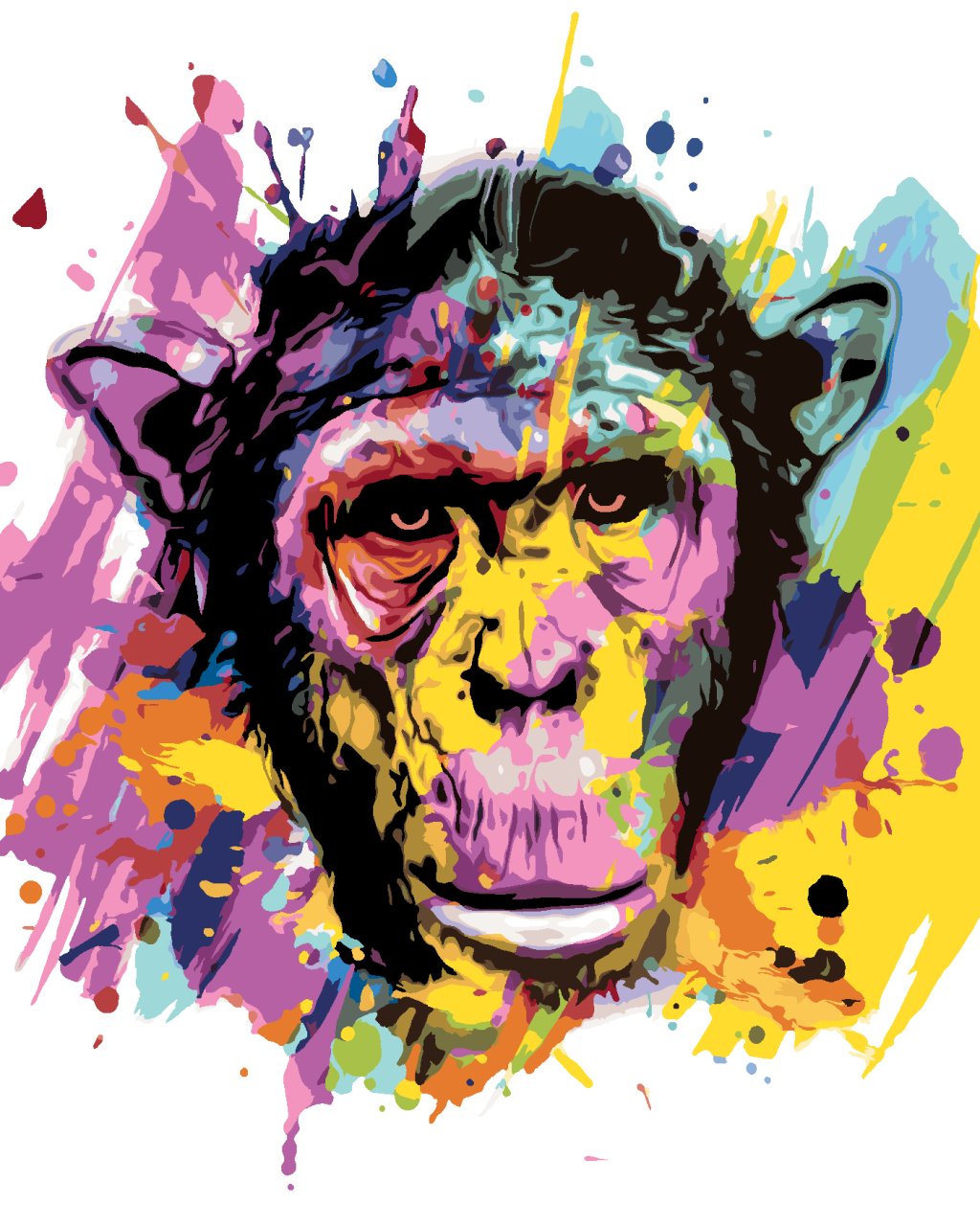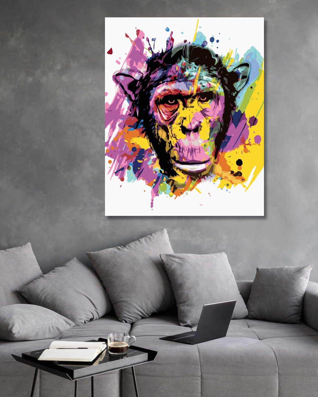 Maľovanie podľa čísel - OPICA NA FAREBNOM POZADÍ