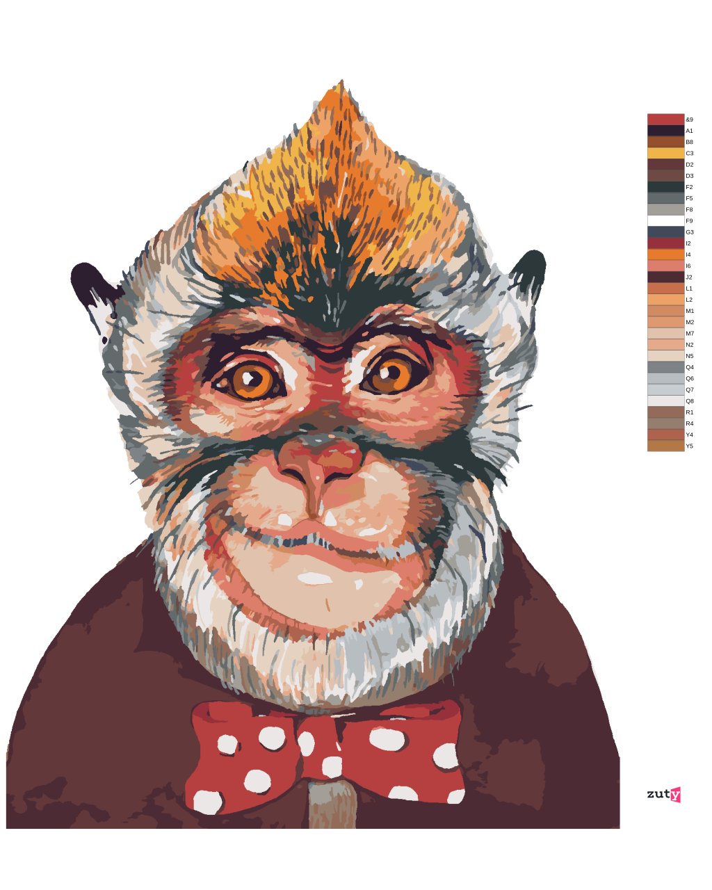 Maľovanie podľa čísel - OPICA S UVIAZANÝM MOTÝLIKOM
