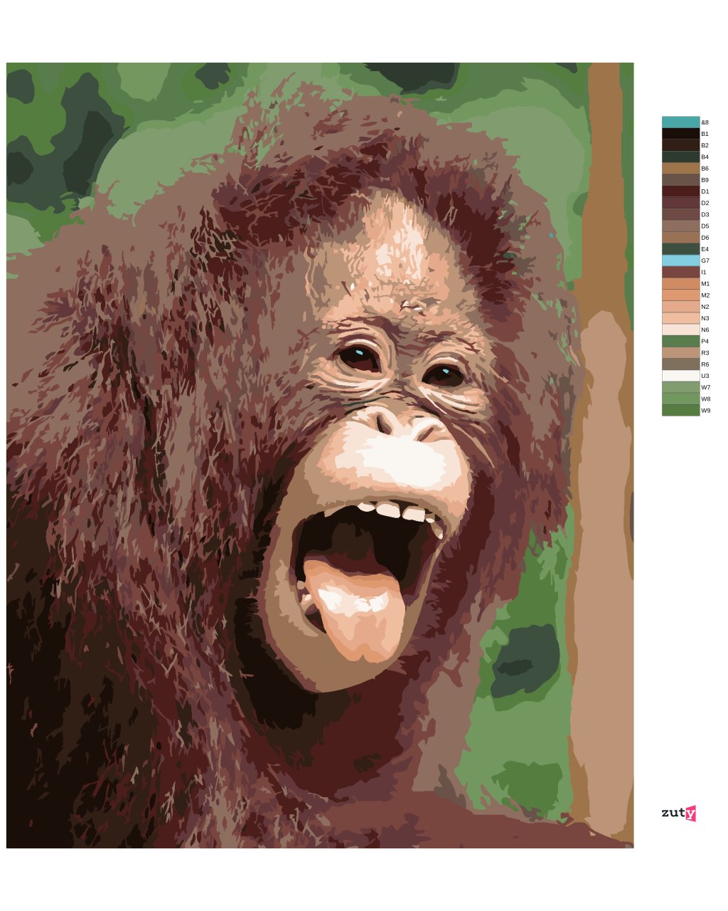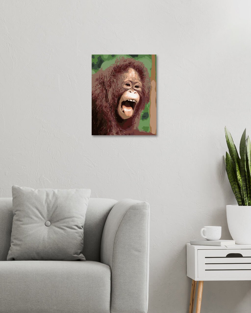 Maľovanie podľa čísel - ORANGUTÁN S OTVORENOU TLAMOU