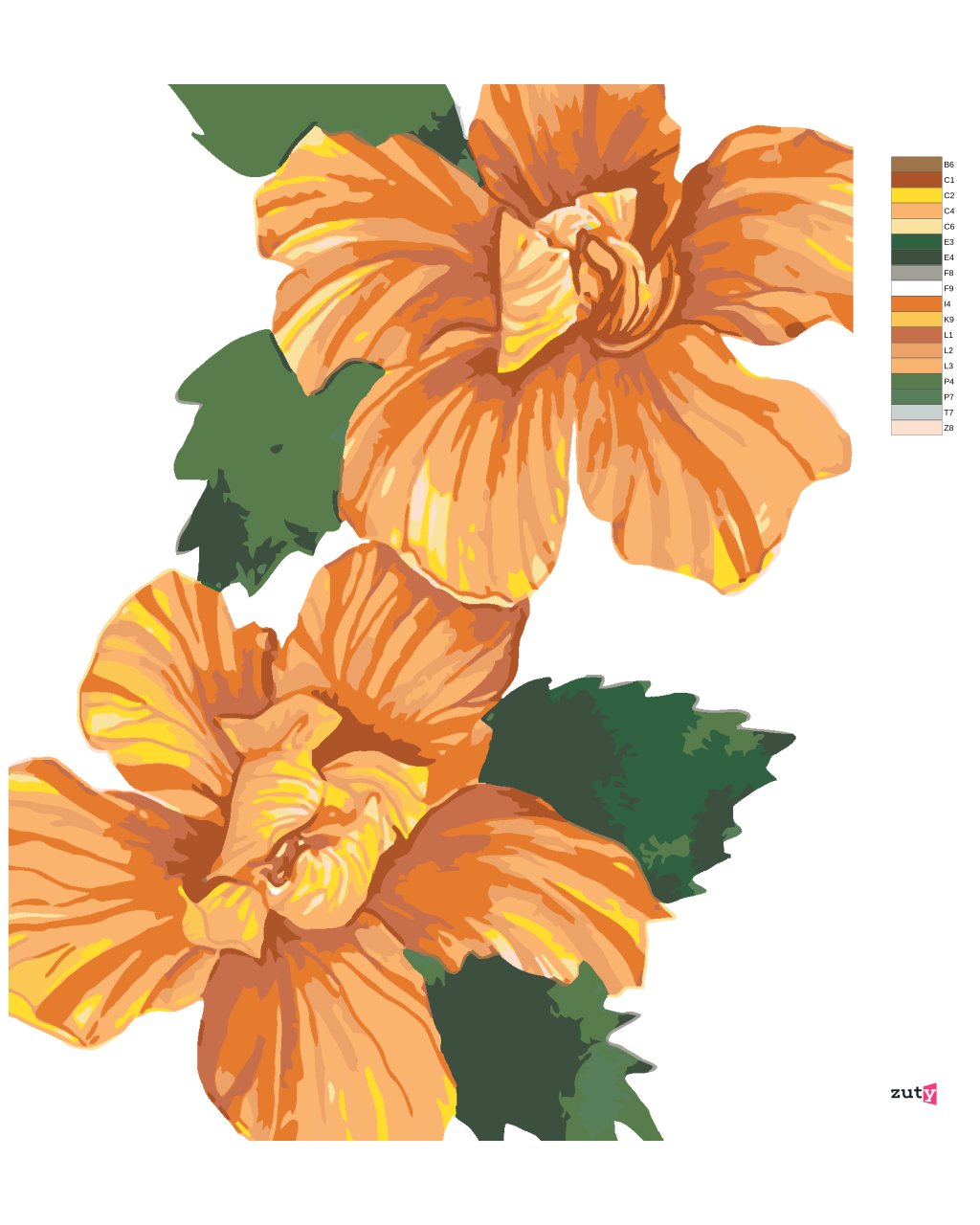 Maľovanie podľa čísel - ORANŽOVÉ KVETY IBIŠTEKA (ALEXANDRIA GILBERT)