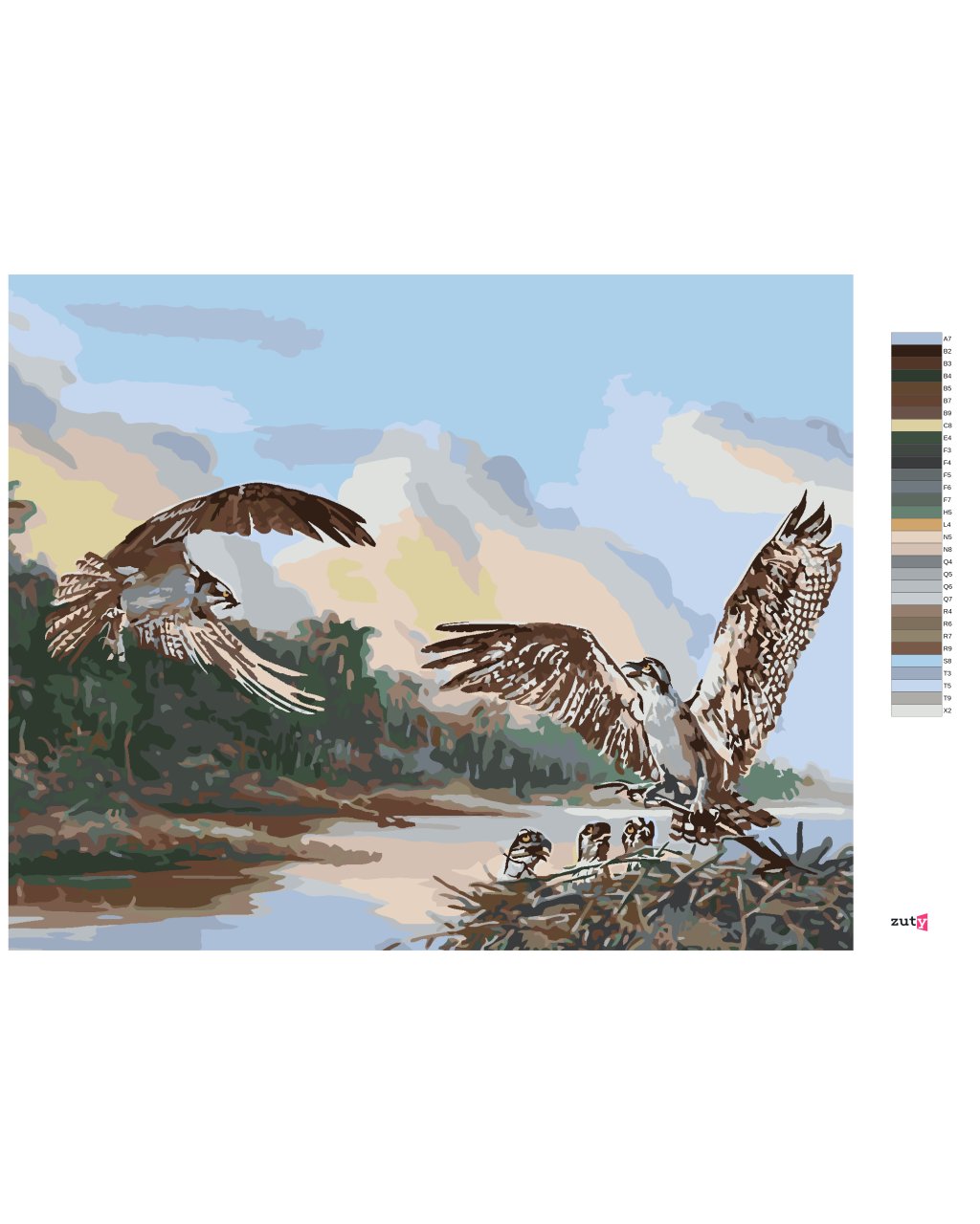 Maľovanie podľa čísel - OROL A HNIEZDO S MLÁĎATAMI (D. RUSTY RUST)
