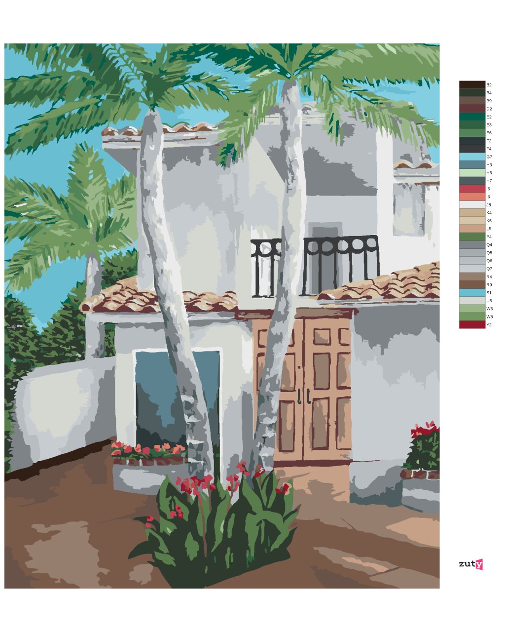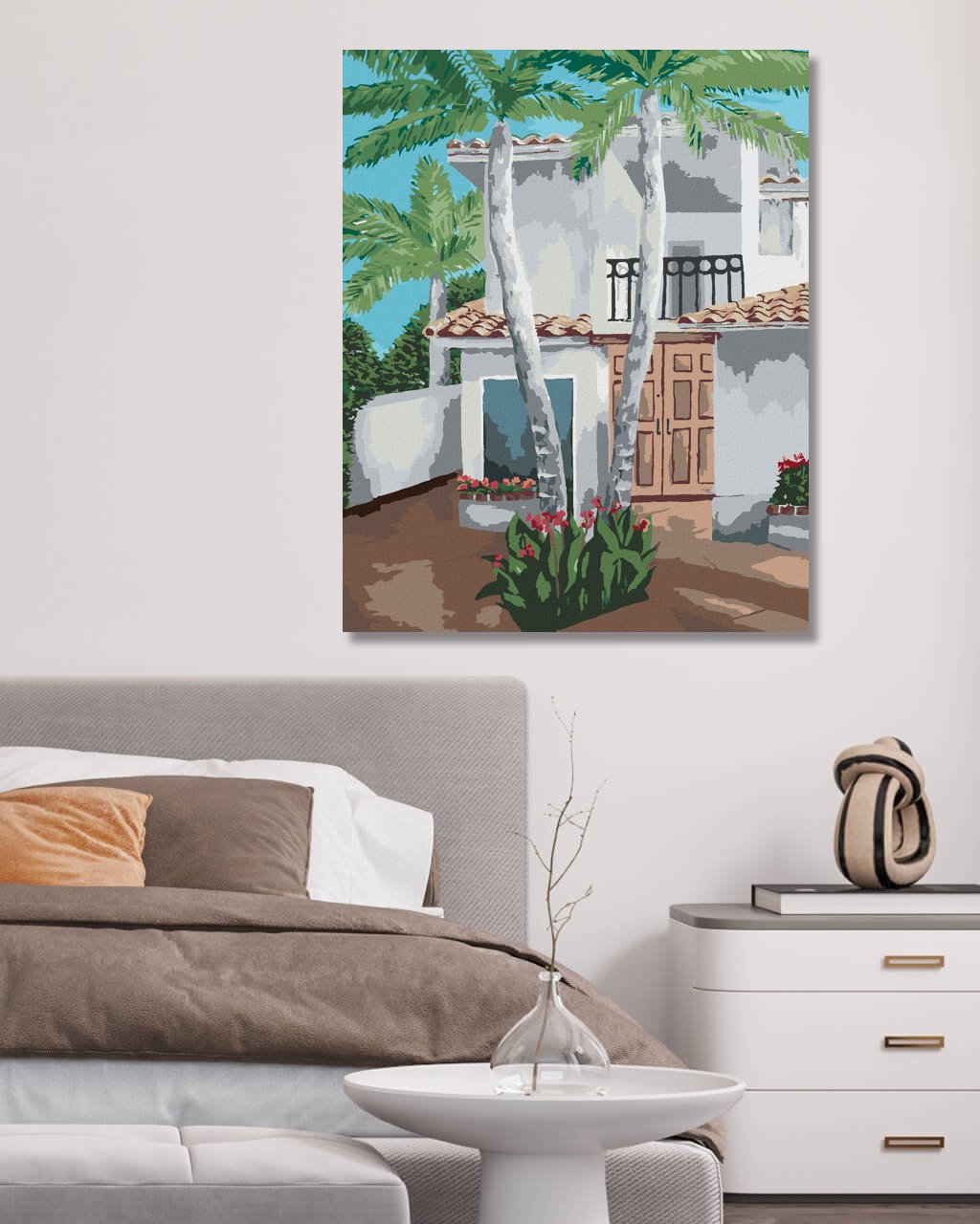 Maľovanie podľa čísel - PALMY PRI LETNOM DOME