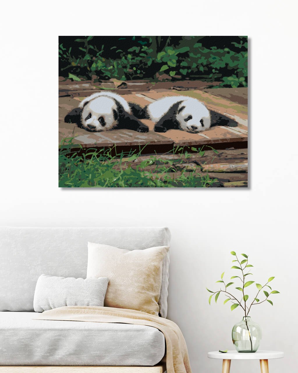 Maľovanie podľa čísel - PANDA LEŽIACA NA DREVE