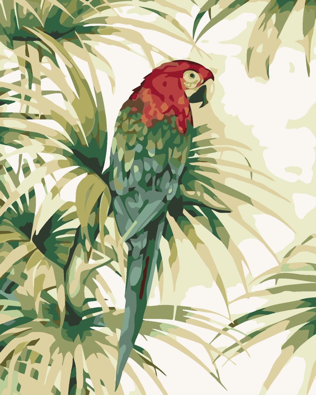 Maľovanie podľa čísel - PAPAGÁJ A TROPICKÉ LISTY