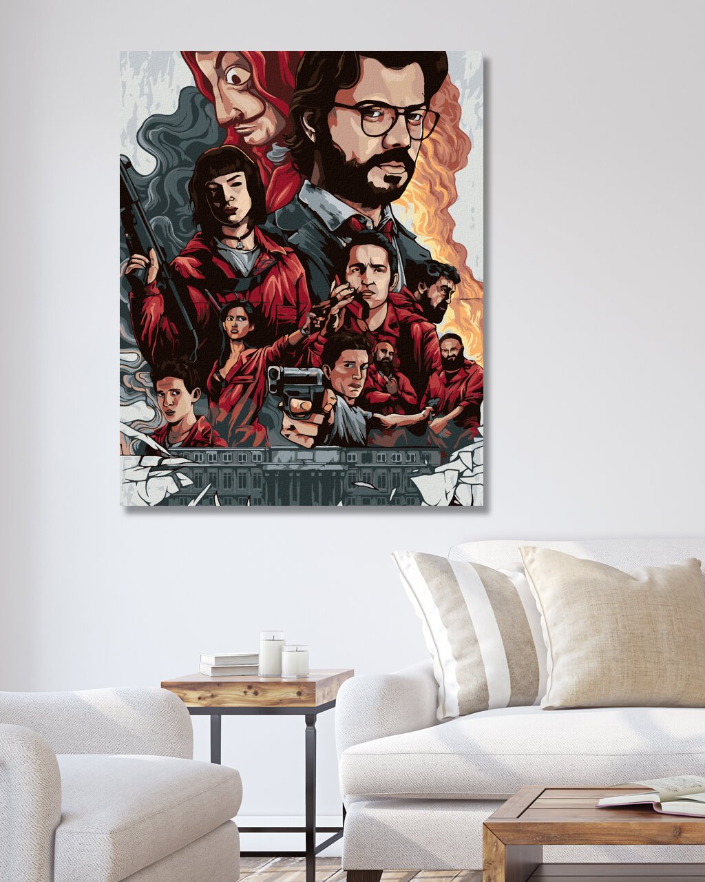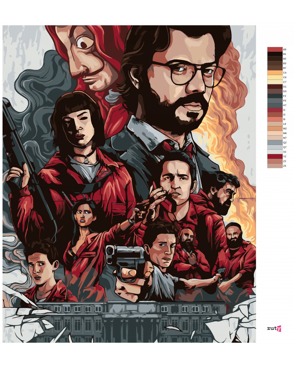 Maľovanie podľa čísel - PAPIEROVÝ DOM ZLOŽENIE POSTÁV (La casa de papel)