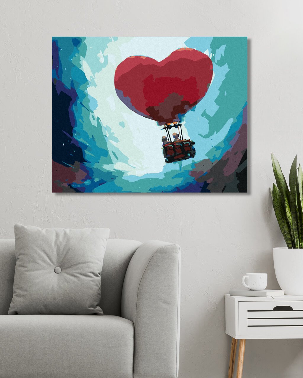 Maľovanie podľa čísel - PÁR LETIACI V SRDIEČKOVOM BALÓNE