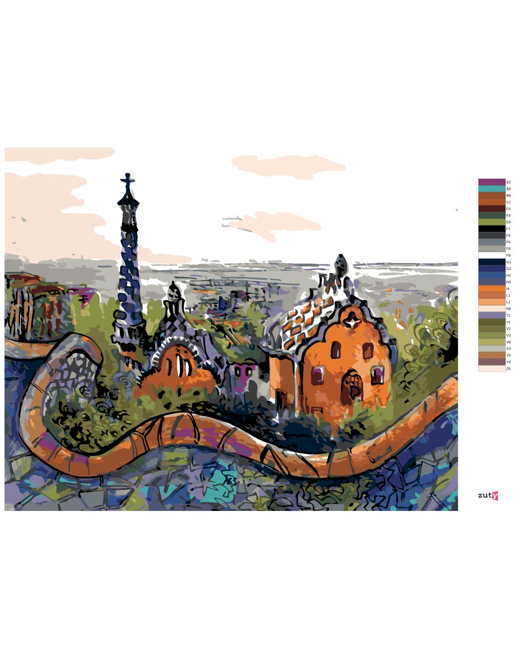 Maľovanie podľa čísel - PARK GÜELL V BARCELONE