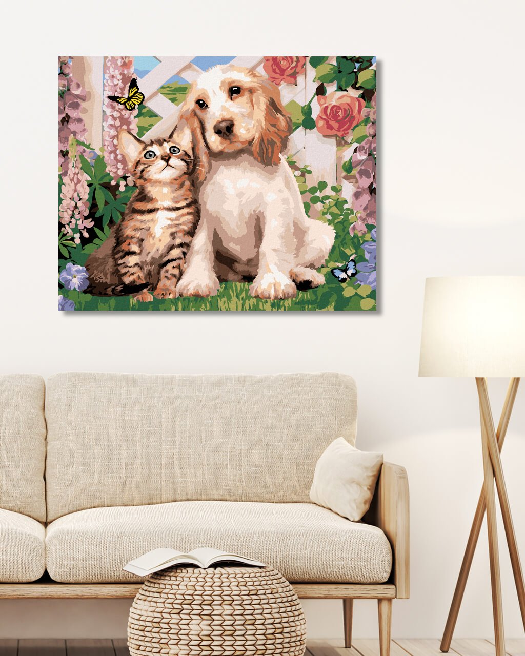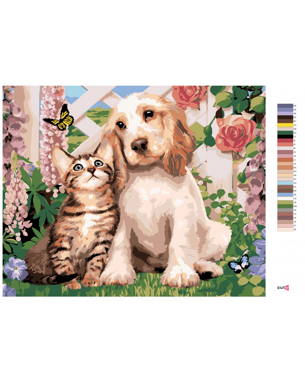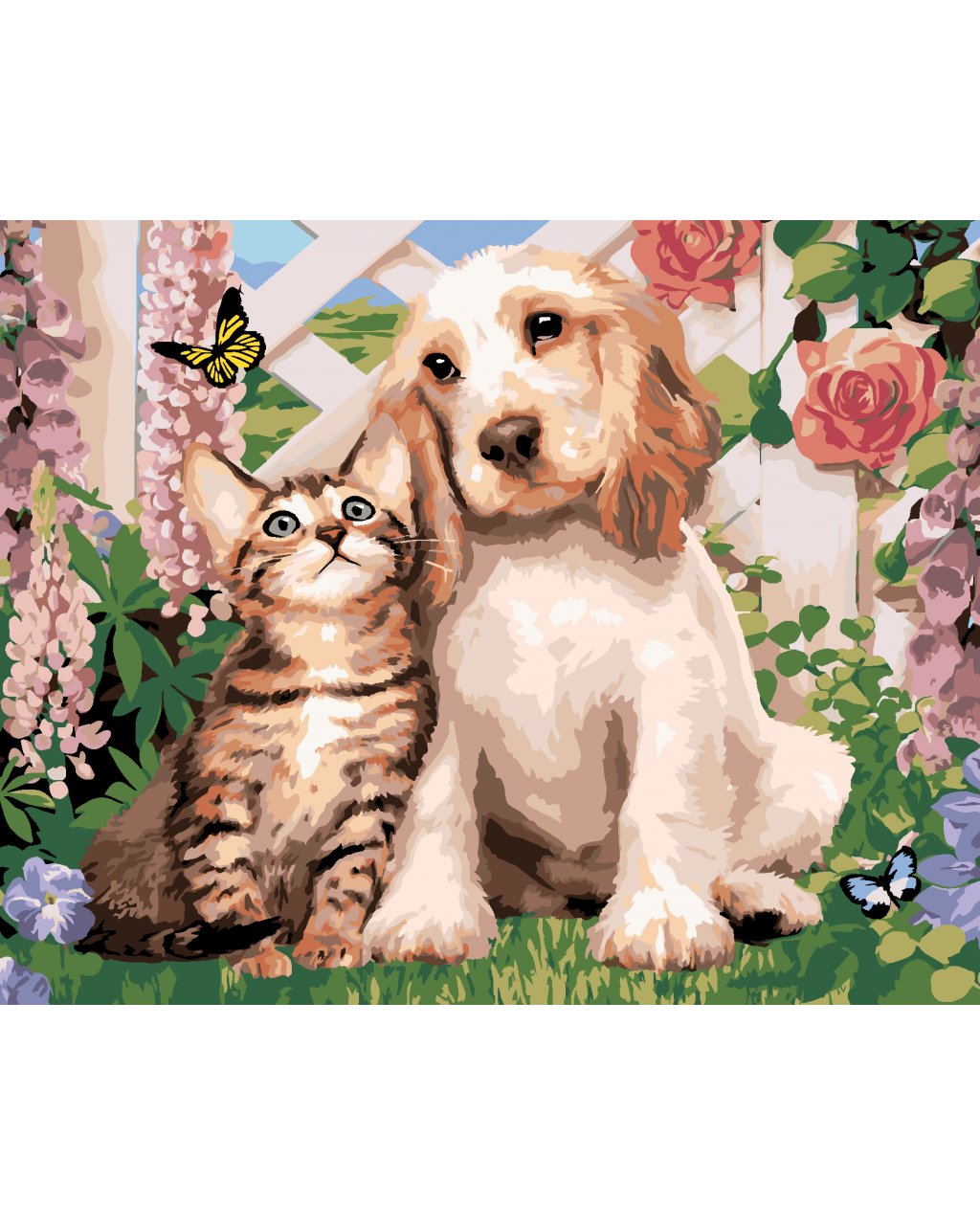 Maľovanie podľa čísel - PES A MAČKA MEDZI KVETMI (HOWARD ROBINSON)