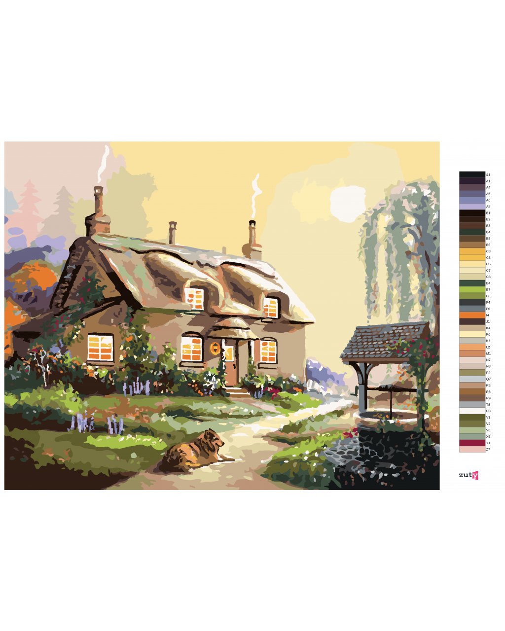 Maľovanie podľa čísel - PES PRED CHALÚPKOU A STUDŇA (D. RUSTY RUST)