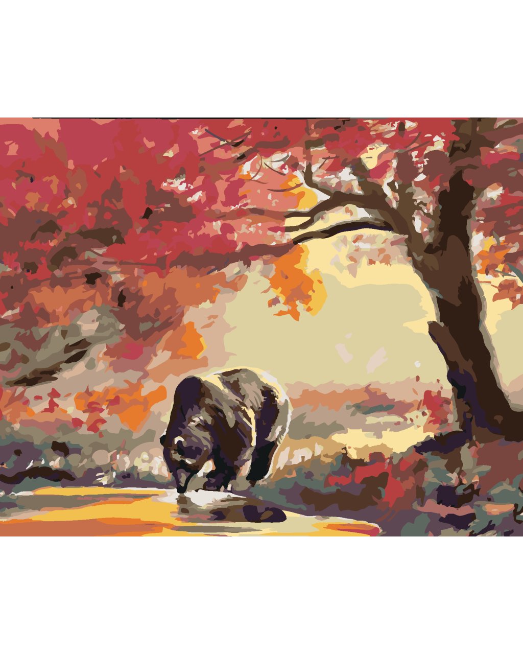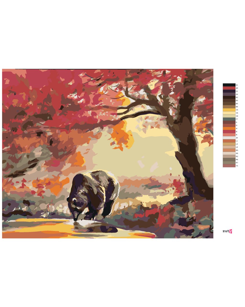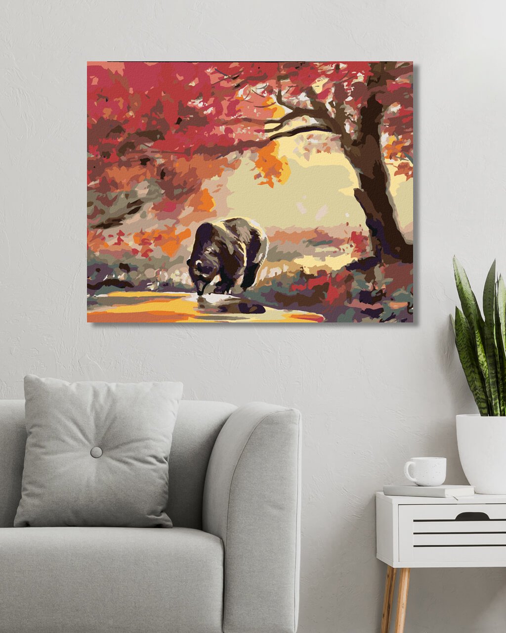 Maľovanie podľa čísel - PIJÚCI MEDVEĎ A JESENNÝ LES (D. RUSTY RUST)