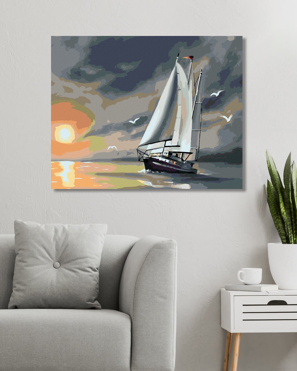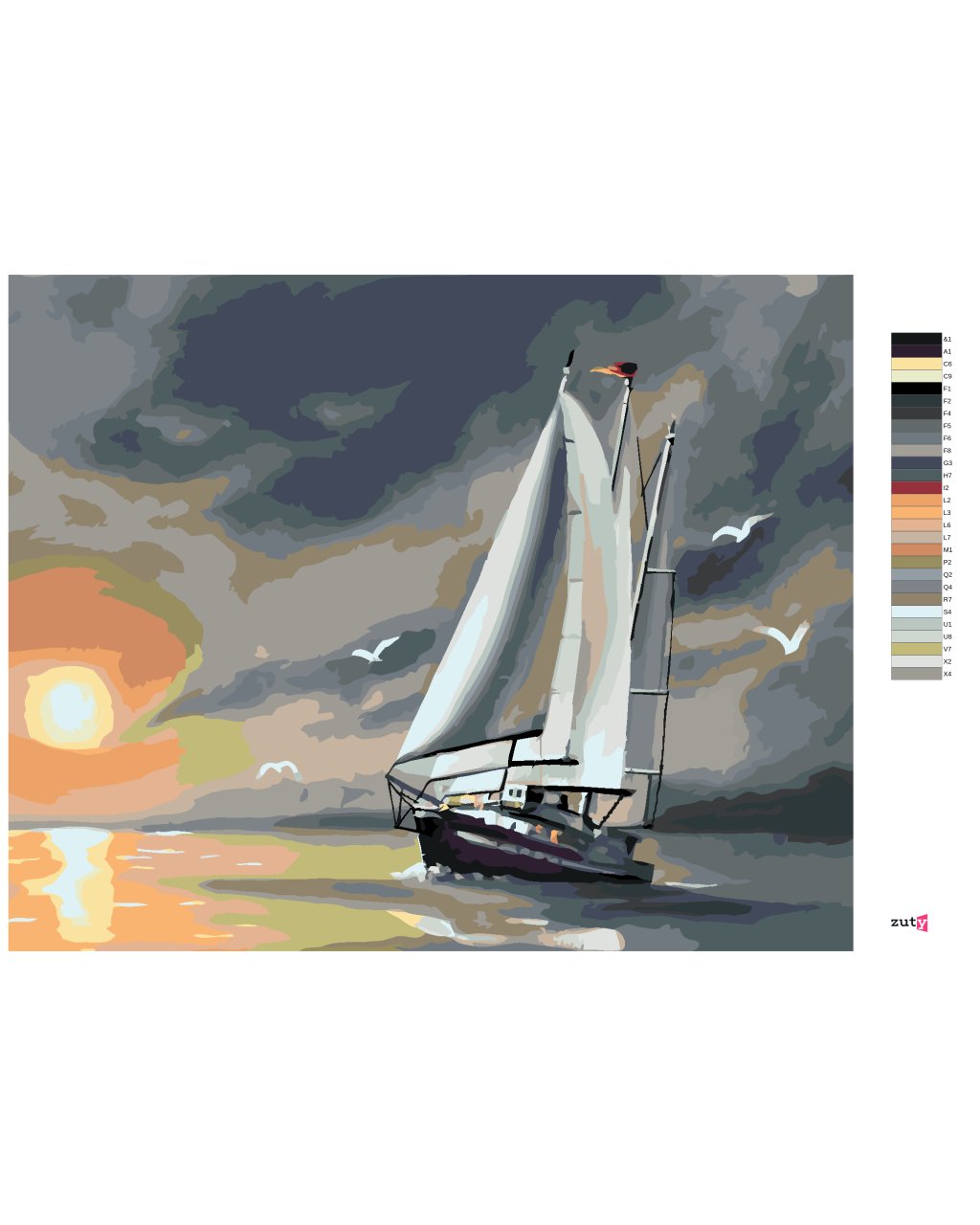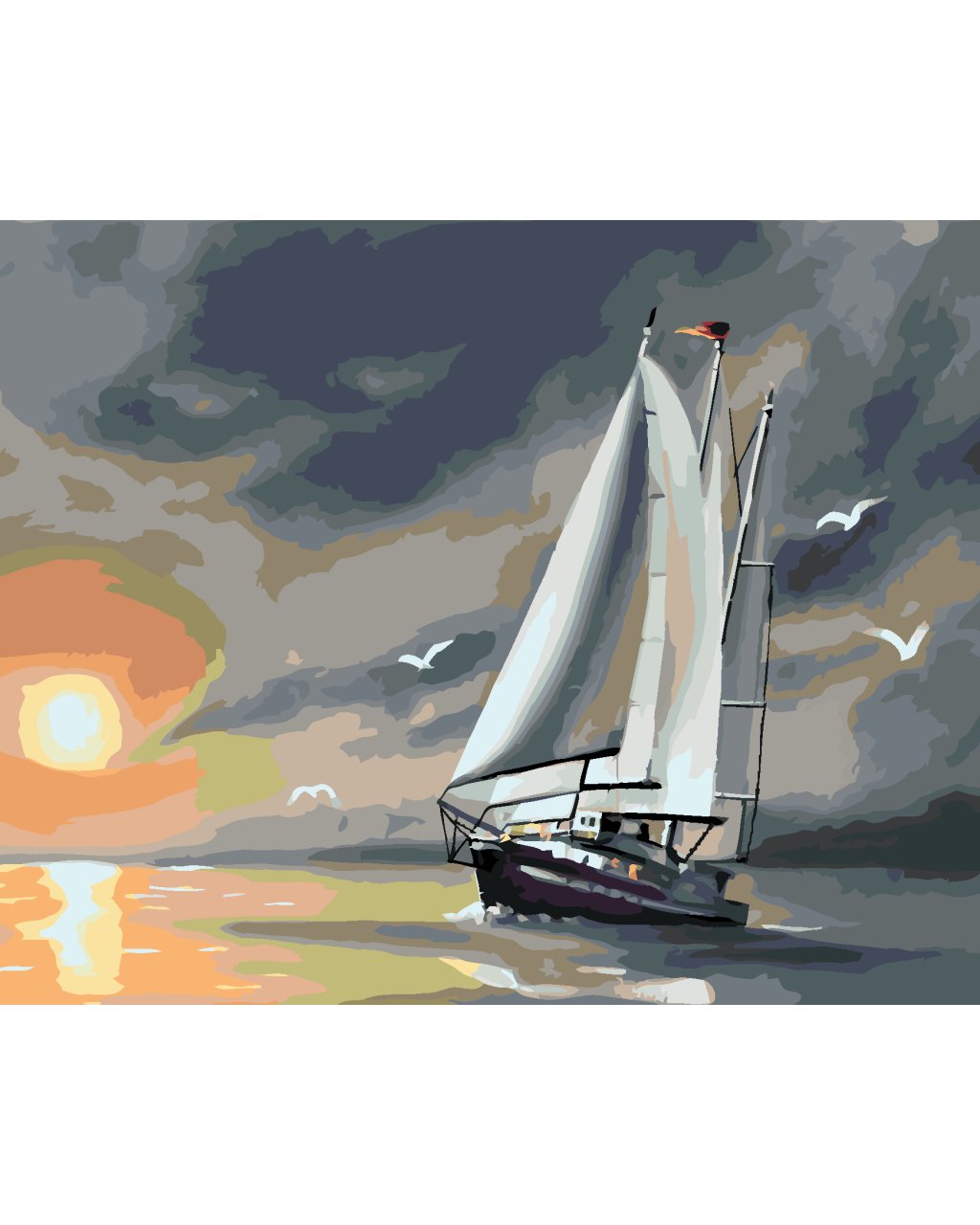 Maľovanie podľa čísel - PLACHETNICA, ČAJKY A ZÁPAD SLNKA (D. RUSTY RUST)