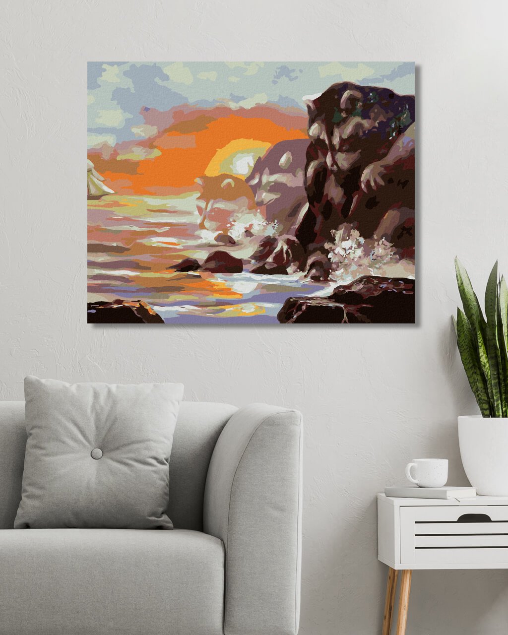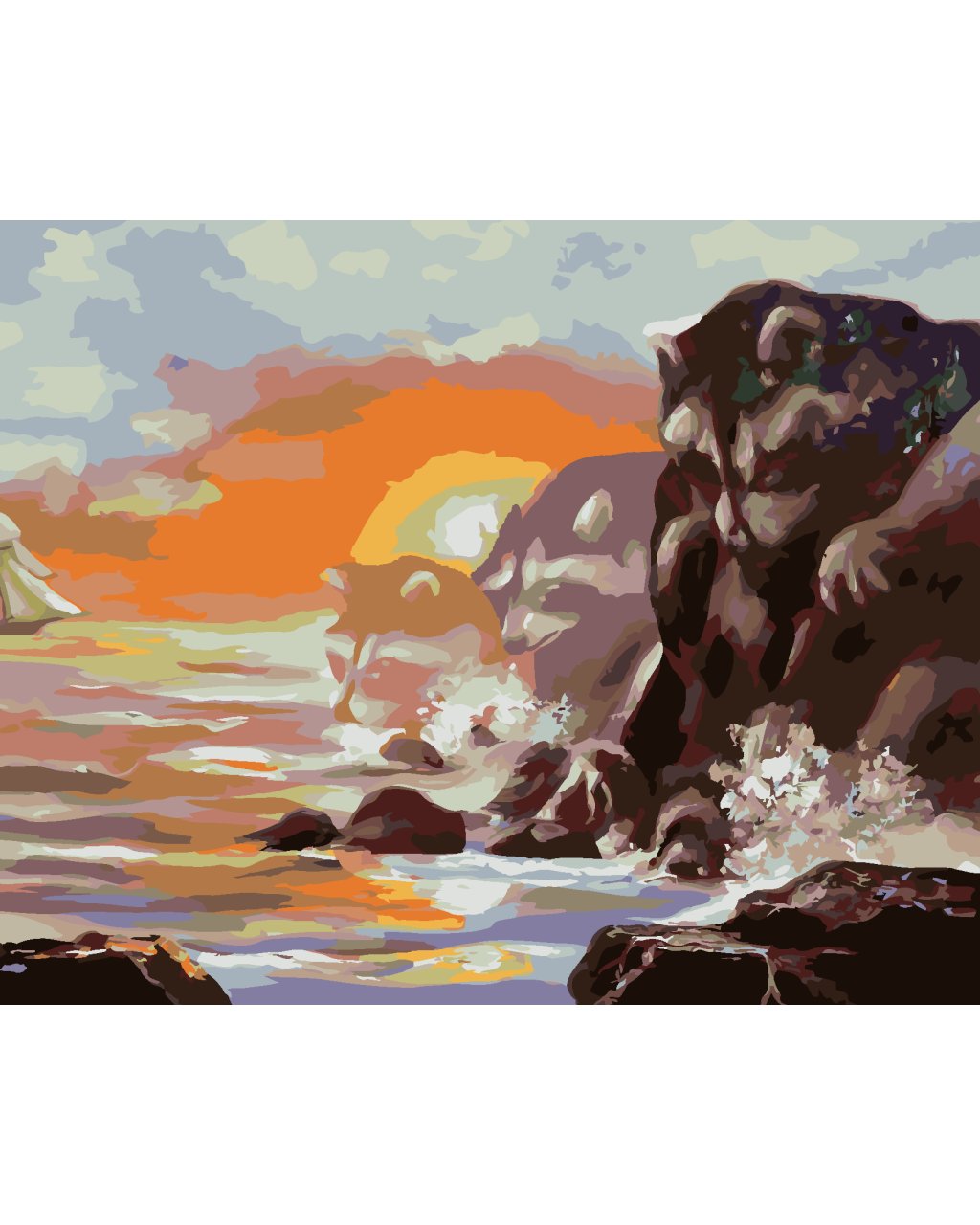 Maľovanie podľa čísel - PLACHETNICA, MÝVAL, SKÁLY, MORE A ZÁPAD SLNKA (D. RUSTY RUST)